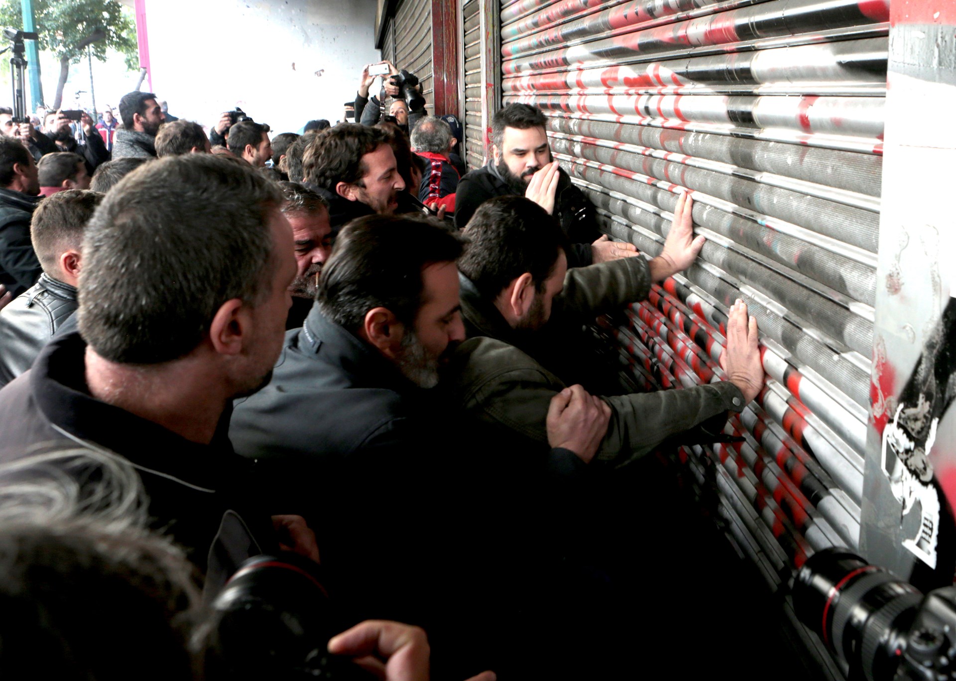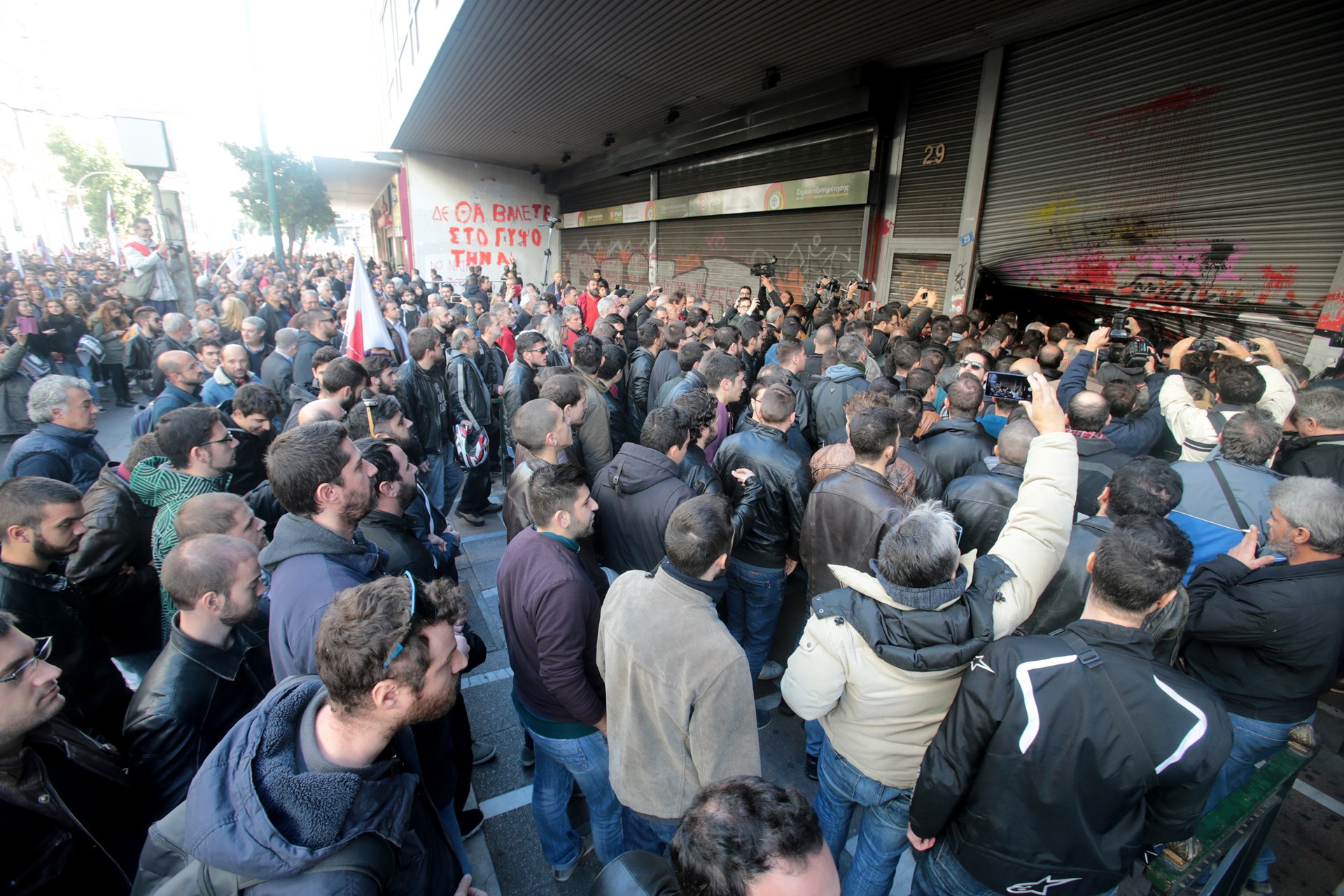 Τα μέλη του ΠΑΜΕ είχαν συγκεντρωθεί στις 12 το μεσημέρι στην Πλατεία Κλαυθμώνος για να πραγματοποιήσουν πορεία, αντιδρώντας στην τροπολογία που κατατέθηκε αιφνιδιαστικά χθες στη Βουλή για τη λήψη απόφασης απεργίας από τις πρωτοβάθμιες συνδικαλιστικές οργανώσεις και η οποία απεσύρθη σήμερα.Λίγο πριν από τη 1 το μεσημέρι τα μέλη του ΠΑΜΕ έφτασαν στο υπουργείο Εργασίας στη Σταδίου. Εισέβαλαν στη στοά που βρίσκεται η είσοδος του υπουργείου σπάζοντας τα στόρια που ήταν κατεβασμένα για λόγους ασφαλείας, ενώ κατά την είσοδό τους αφαίρεσαν τα γράμματα που βρίσκονται πάνω από την είσοδο του υπουργείου.