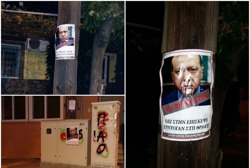 Στην αστυνομία οδηγήθηκαν τρία άτομα που αφισοκολλούσαν υλικό κατά της επίσκεψης τουΤαγίπ Ερντογάνστη Θράκη.