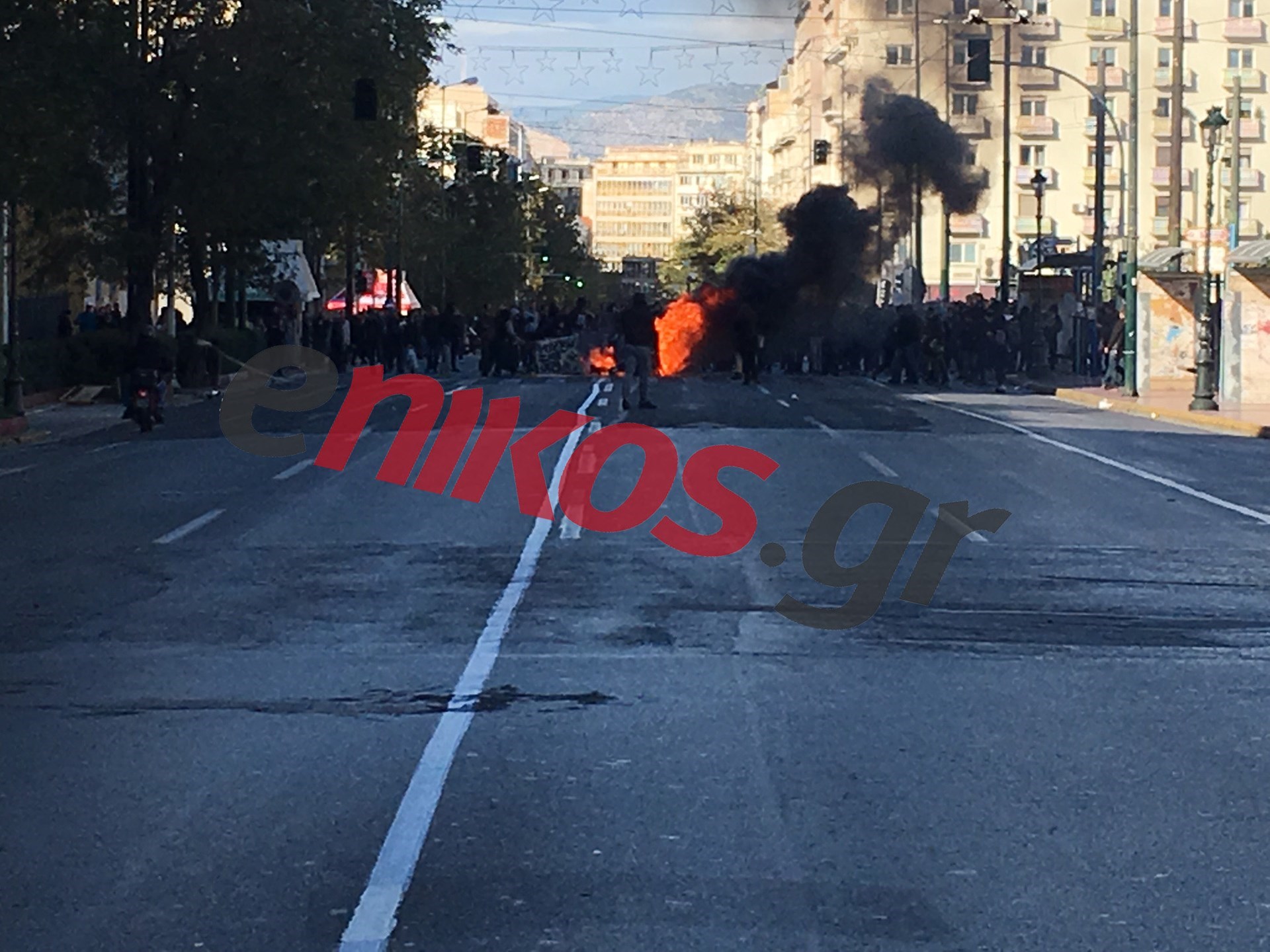 Επεισόδια προκλήθηκαν κατά τη διάρκεια του συλλαλητηρίου μαθητών και φοιτητών που έγινε με αφορμή τη συμπλήρωση εννέα χρόνων από τη δολοφονία του Αλέξανδρου Γρηγορόπουλου, το οποίο και ολοκληρώθηκε πριν από λίγο στα Προπύλαια.