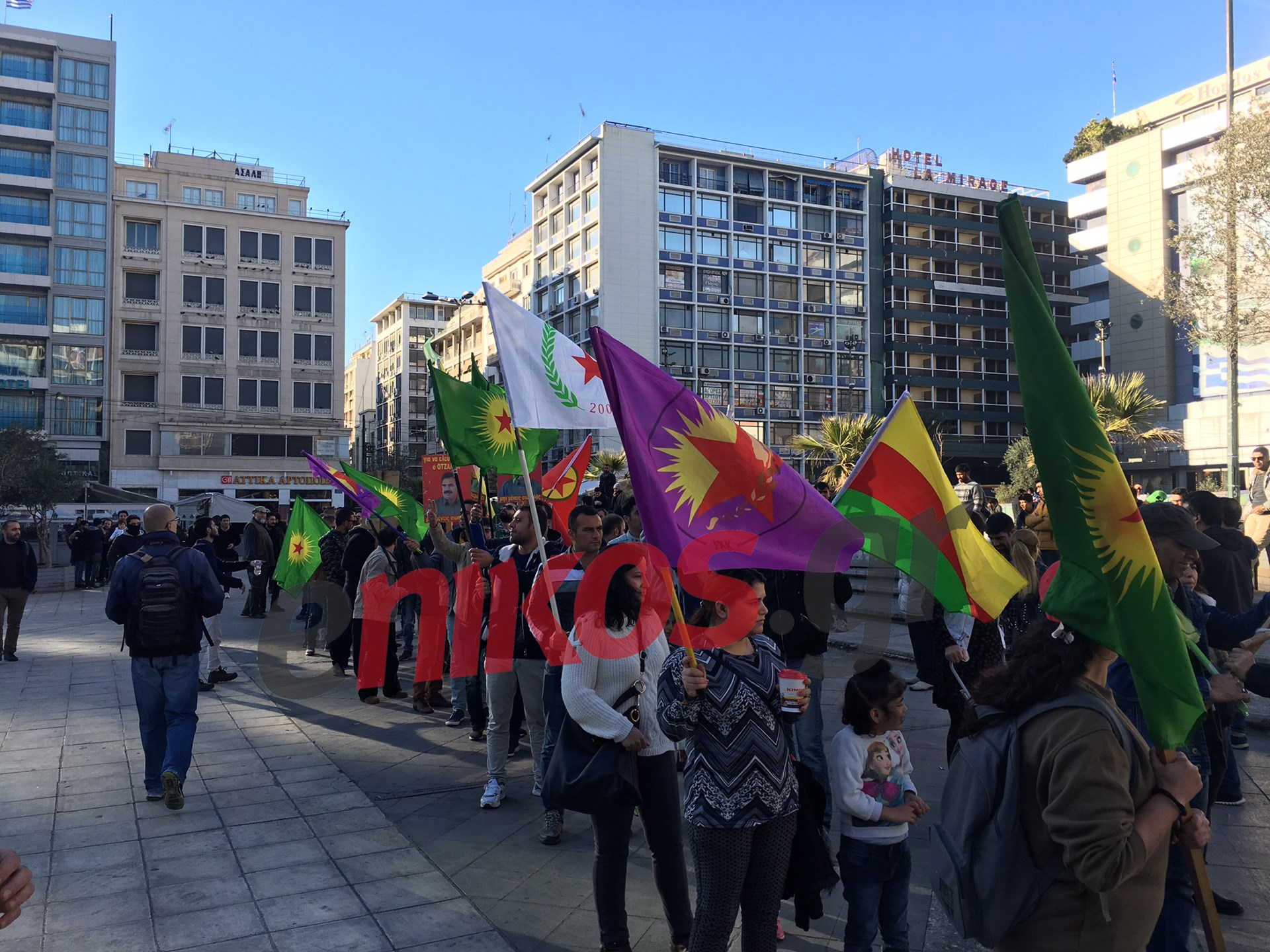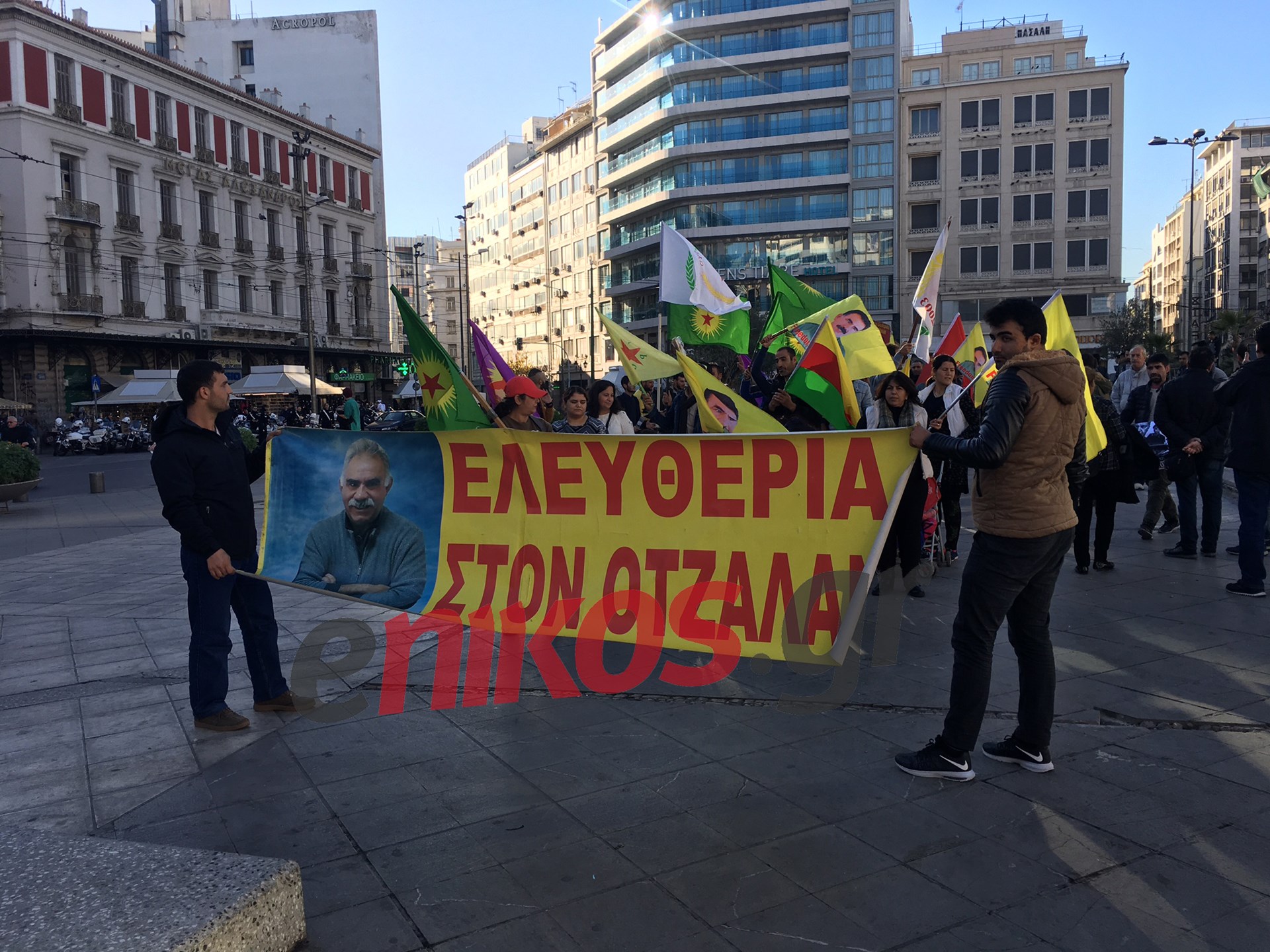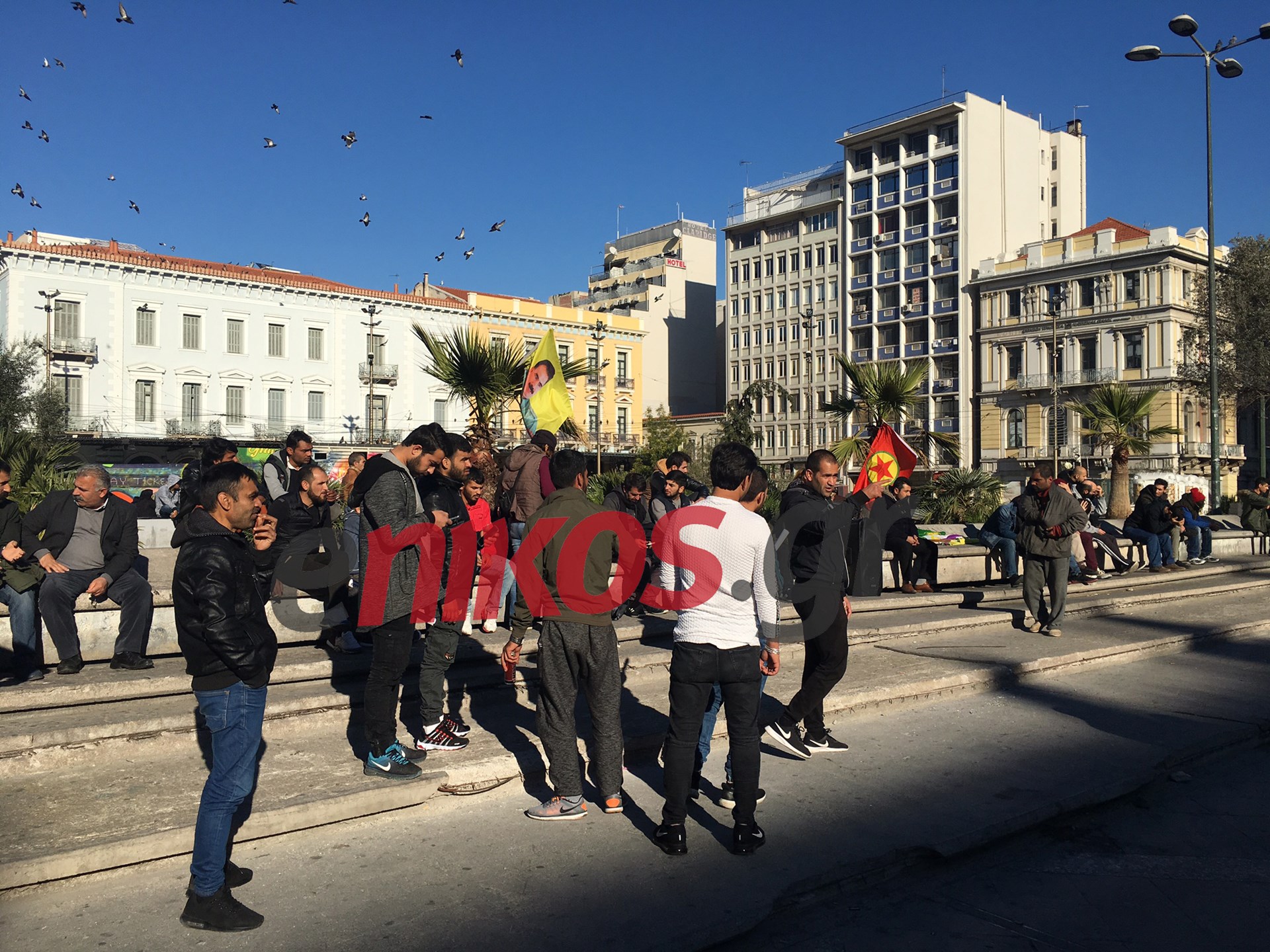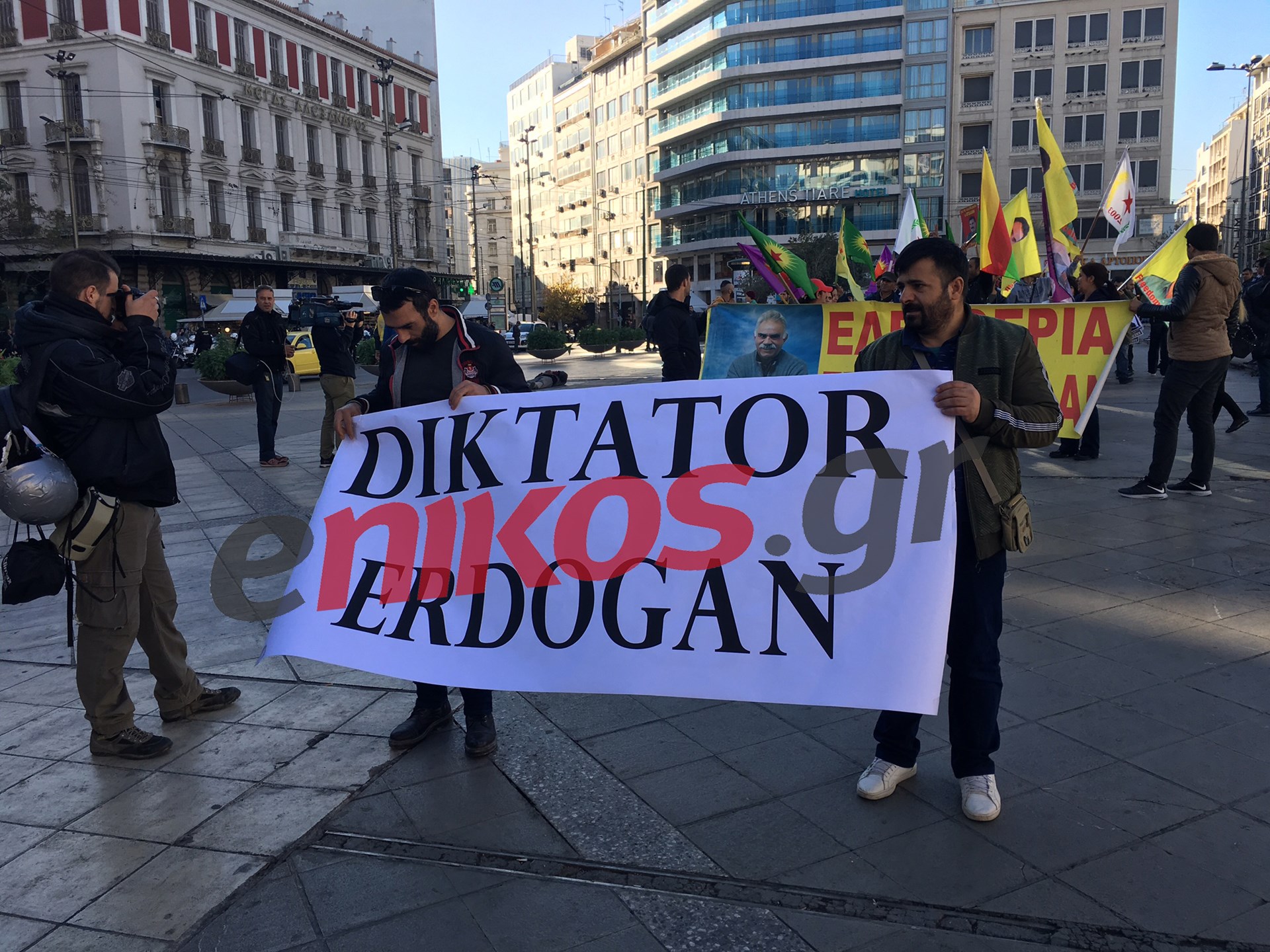 Μέλη του Πολιτιστικού Κέντρου του Κουρδιστάν, πραγματοποιούν αυτήν την ώρα πορεία κατά του Προέδρου της Τουρκίας, Ρετζέπ Ταγίπ Ερντογάν, στο κέντρο της Αθήνας.