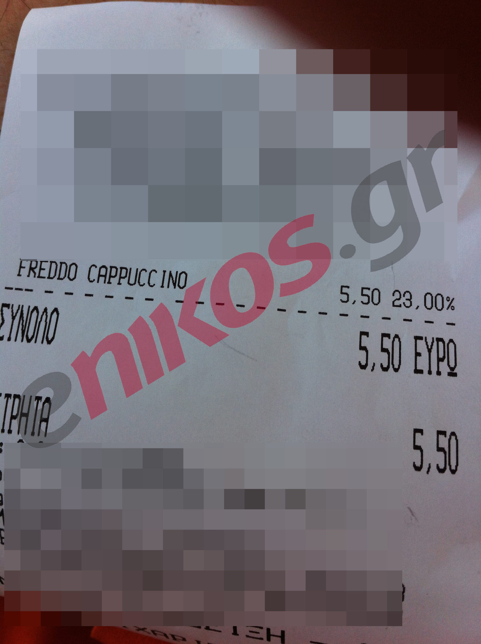 Την φωτογραφία μας την έστειλε αναγνώστης που πλήρωσε 5,50 ευρώ για έναν καφέ”Θαυμάστε τιμή, μου βγήκε πικρός, παρ όλο που τον παρήγγειλα μέτριο!!
