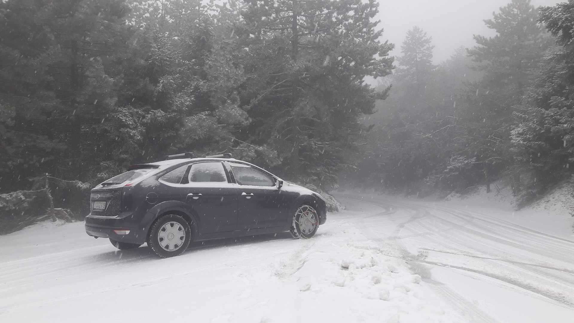 Στα λευκά ντύθηκε η Πάρνηθα, αφού από χθες το βράδυ ξεκίνησε να χιονίζει, ενώ το κρύο είναι τσουχτερό.