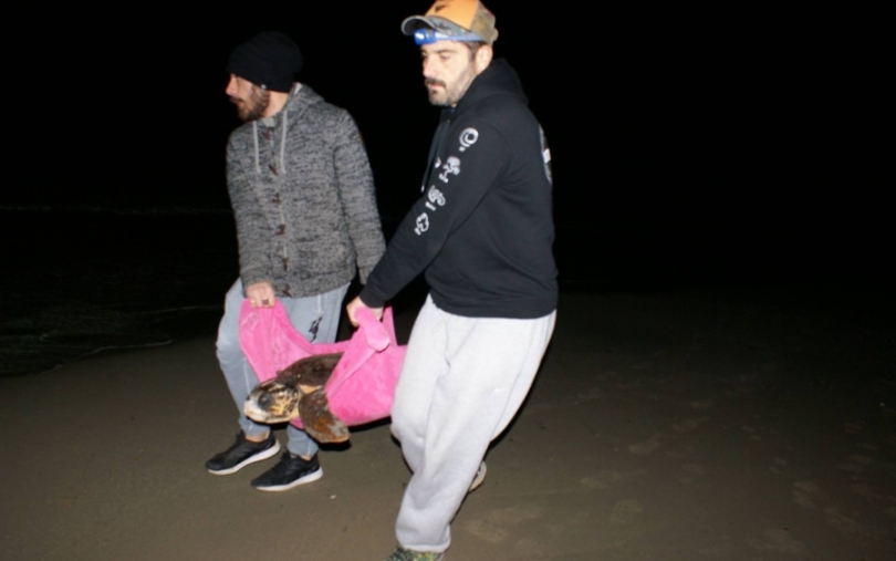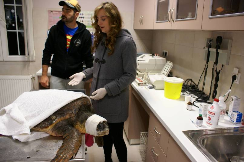 Η ομάδα του Wildlife Sense που συμβάλει στην προστασία των θαλάσσιων χελωνών και των φωλιών τους στην Κεφαλονιά, οργάνωσε επιχείρηση διάσωσης, κι έτσι η χελώνα μεταφέρθηκε με ειδικά διαμορφωμένο όχημα στο γραφείο της κτηνιάτρου Σπυριδούλας Βαβάση, η οποία της χορήγησε τις πρώτες βοήθειες.