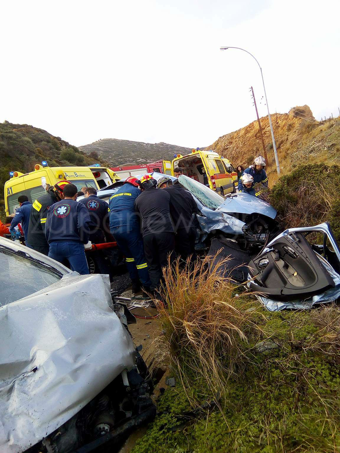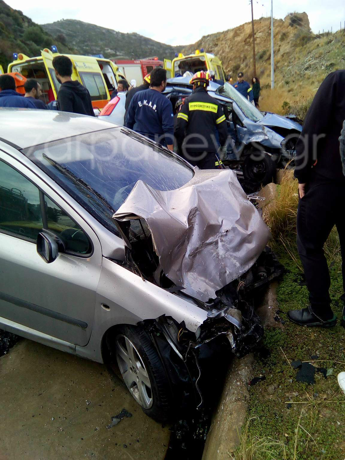 Στο σημείο έσπευσαν τέσσερα ασθενοφόρα του ΕΚΑΒ και ένα του «Χαμόγελου του Παιδιού», δύο οχήματα της Πυροσβεστικής και η Αστυνομία.