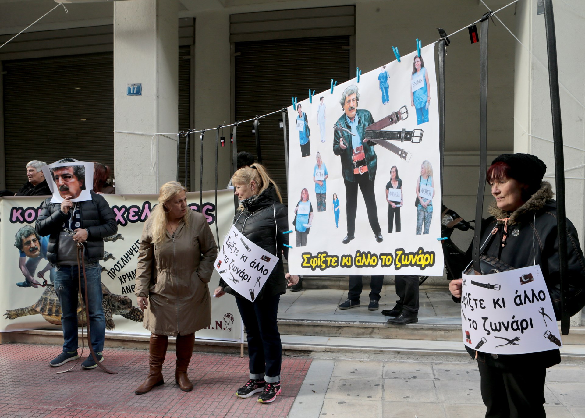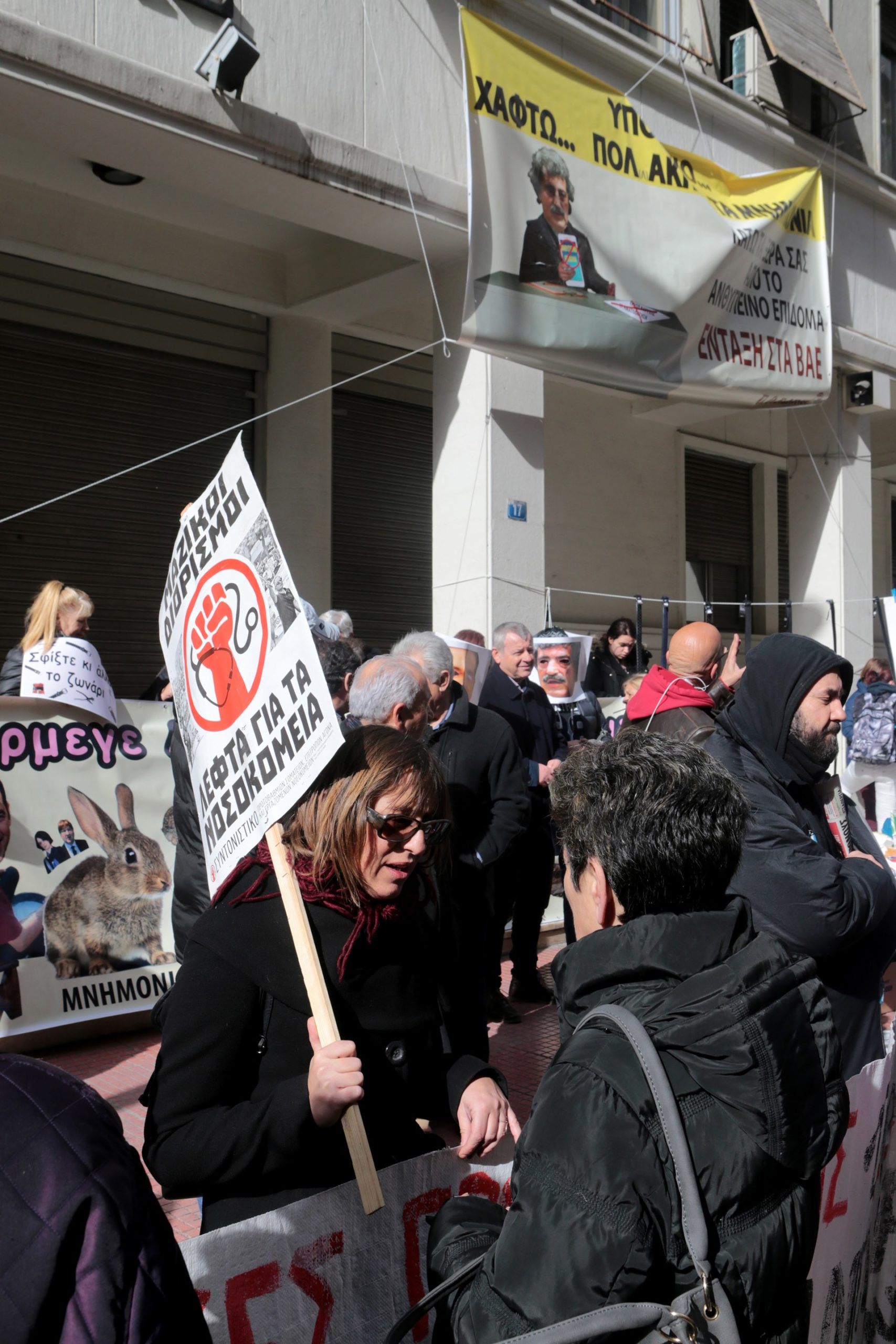 Κάποιοι από τους διαδηλωτές φόρεσαν μάσκες του Τσίπρα και του Πολάκη και κρατούσαν ζώνες στις οποίες έφτιαχναν νέες τρύπες, και είχαν πανό στο οποίο αναγραφόταν “Σφίξτε κι άλλο το ζωνάρι”.