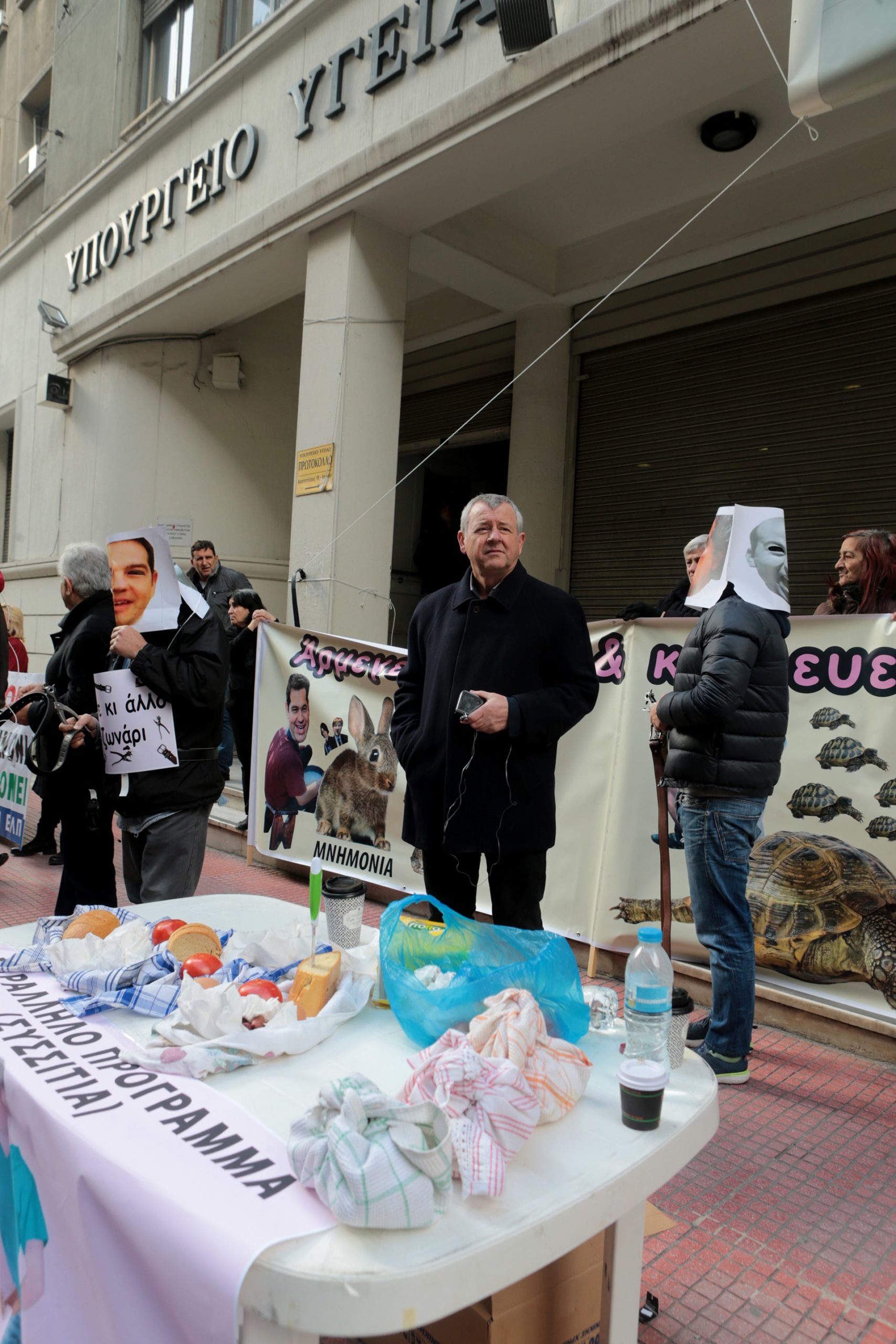 Νωρίτερα, οι συνδικαλιστές μοίραζαν ψωμί κι ελιές, καθώς υποστηρίζουν ότι τα μέτρα της κυβέρνησης τους οδηγούν στα συσσίτια, ενώ σημειώθηκε ένταση όταν μέλη της ΠΟΕΔΗΝ θέλησαν να μπουν στο κτίριο και τα ΜΑΤ τους απώθησαν.