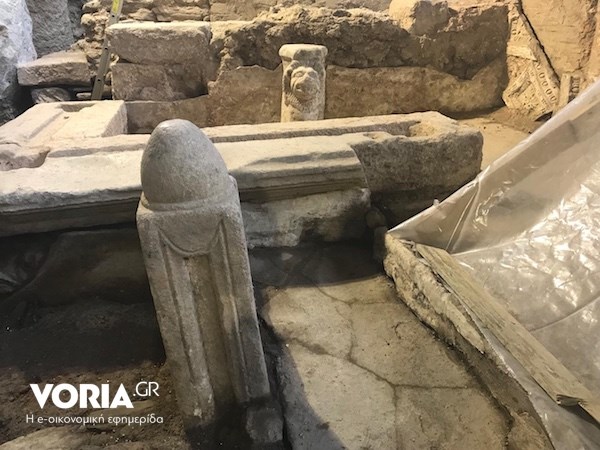 Ανάμεσα σε αυτά συγκαταλέγεται και το μνημειώδες κρηναίο οικοδόμημα που βρέθηκε στο νοτιοανατολικό άκρο της μαρμαρόστρωτης πλατείας, που ήρθε στο φως στις ανασκαφές του σταθμού, στο τμήμα πάνω από την Εγνατία. Το αρχαιολογικό διαμαντάκι έγινε η αιτία αρχαιολόγοι και μηχανικοί του Μετρό να καθίσουν ξανά στο ίδιο τραπέζι και να αποφασίσουν πώς θα καταφέρουν να διατηρήσουν το σημαντικό μνημείο και ταυτόχρονα να παραδώσουν τον σταθμό στην ώρα του και χωρίς επιβάρυνση του προϋπολογισμού.