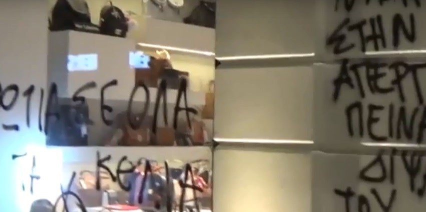 Σύμφωνα με το patrastimes.gr, λίγο μετά τις 10.00 το βράδυ ομάδα 20 περίπου ατόμων ξεκίνησαν από το πρώην Παράρτημα και γυρνώντας το κέντρο της Πάτρας άρχισαν να βάφουν με σπρέι τράπεζες, καταστήματα και εκκλησίες.