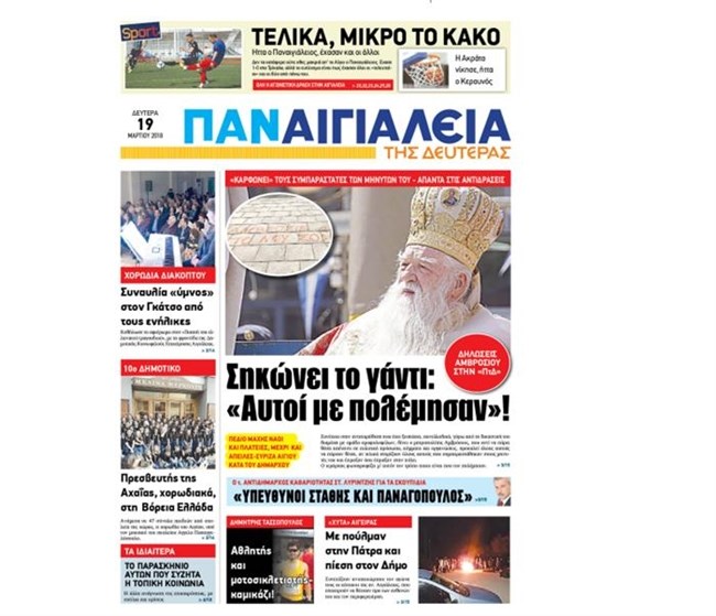 Ο Μητροπολίτης Αιγιαλείας και Καλαβρύτων σχολίασε την αθωωτική απόφαση του δικαστηρίου του Αιγίου με δηλώσεις του στην εφημερίδα Πελοπόννησος.