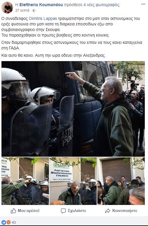 Όταν διαμαρτυρήθηκε στους αστυνομικούς του είπαν να τους κάνει καταγγελία, πράγμα που αναμένεται να πράξει εντός των επομένων ωρών με δεδομένο πως μεταβαίνει στη ΓΑΔΑ στη Λεωφόρο Αλεξάνδρας. Δείτε την ανάρτηση: