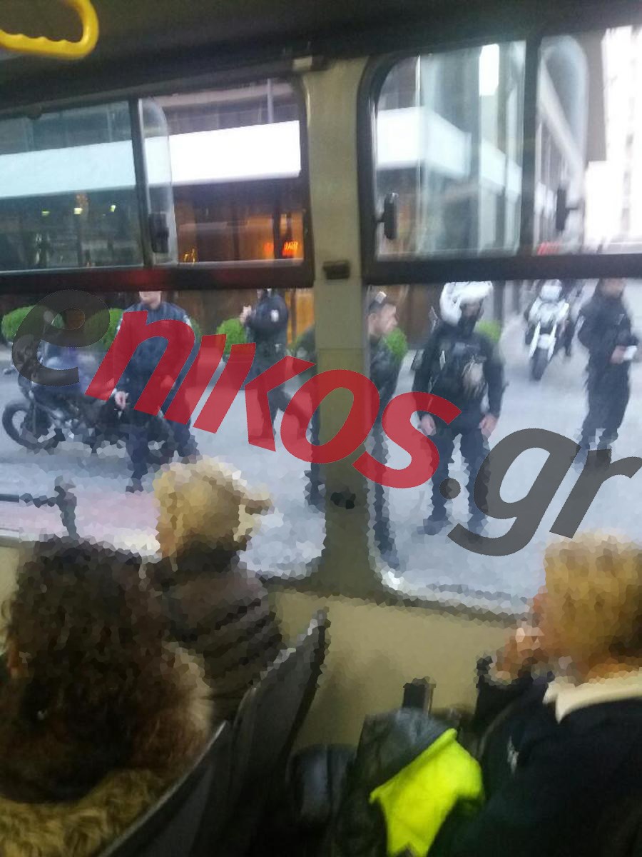Σύμφωνα με επιβάτη, αναγνώστη του enikos.gr, λίγο μετά τις 18:30 η αστυνομία σταμάτησε το λεωφορείο στη Λεωφόρο Κηφισίας, στο ύψος του ξενοδοχείου President. Όπως αναφέρει ο αναγνώστης, περίπου δέκα αστυνομικοί μπήκαν μέσα στο λεωφορείο και ξεκίνησαν να ελέγχουν έναν έναν τους επιβάτες, ζητώντας τις ταυτότητές τους. Σημείωσαν τα ονόματά τους και για αρκετή ώρα δεν άφηναν τους επιβάτες να κατέβουν από το λεωφορείο. Κάποια στιγμή τους επέτρεψαν να βγουν έξω, ωστόσο τους ζήτησαν να μην απομακρυνθούν από το σημείο. Τελικά, λίγο μετά τις 8 το βράδυ, ο οδηγός ζήτησε συγγνώμη στους επιβάτες για την ταλαιπωρία και το λεωφορείο συνέχισε το δρομολόγιό του. Κανείς δεν τους ενημέρωσε επισήμως τι ακριβώς είχε συμβεί, ωστόσο επιβάτες που ρώτησαν αστυνομικούς που βρίσκονταν στο σημείο αναφέρουν πως τους είπαν ότι υπήρξε καταγγελία πως μέλη του Ρουβίκωνα που πέταξαν μπογιές στο τουρκικό προξενείο στο Ψυχικό επιβιβάστηκαν στο συγκεκριμένο λεωφορείο.