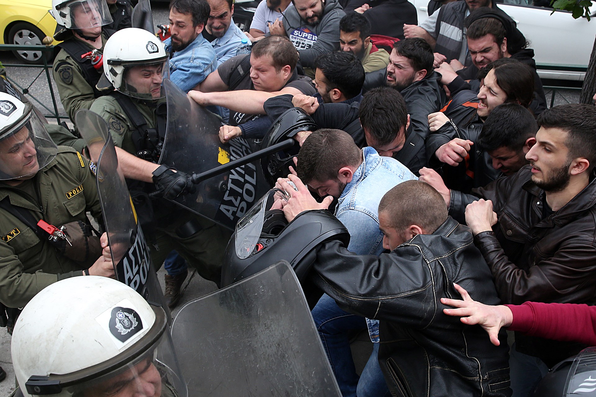 Κατά τη διάρκεια της πορείας, που ξεκίνησε από τα Προπύλαια και κατευθύνεται στην αμερικανική πρεσβεία, μια ομάδα νεαρών αποκόπηκε από την πορεία και προσπάθησε να κόψει με τροχό το άγαλμα του Τρούμαν και μετά να το κατεβάσει με σχοινιά.