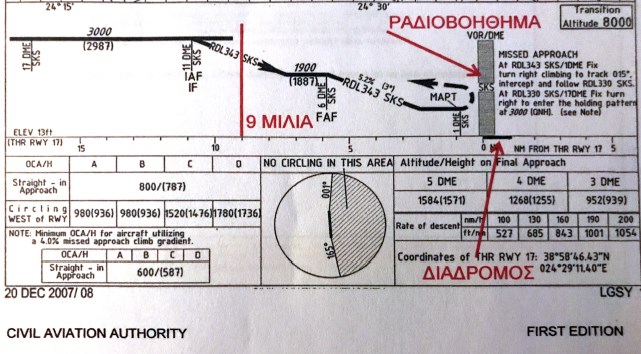 Ο ραδιοφάρος της Σκύρου λοιπόν που θα έδινε την απαραίτητη βοήθεια κατά τη προσέγγιση του Σμηναγού στο αεροδρόμιο, ήταν εκτός λειτουργίας όπως προκύπτει από το έγγραφο που δημοσιεύουμε. Ειδικά με τις καιρικές συνθήκες που επικρατούσαν στη περιοχή, όπου η ορατότητα ήταν προβληματική, η λειτουργία του ραδιοφάρου ήταν κάτι παραπάνω από αναγκαία. Όπως προκύπτει από το έγγραφο υπάρχουν κι άλλες ελλείψεις στο αεροδρόμιο, οι οποίες όμως στο συγκεκριμένο συμβάν δεν έπαιξαν ρόλο.
