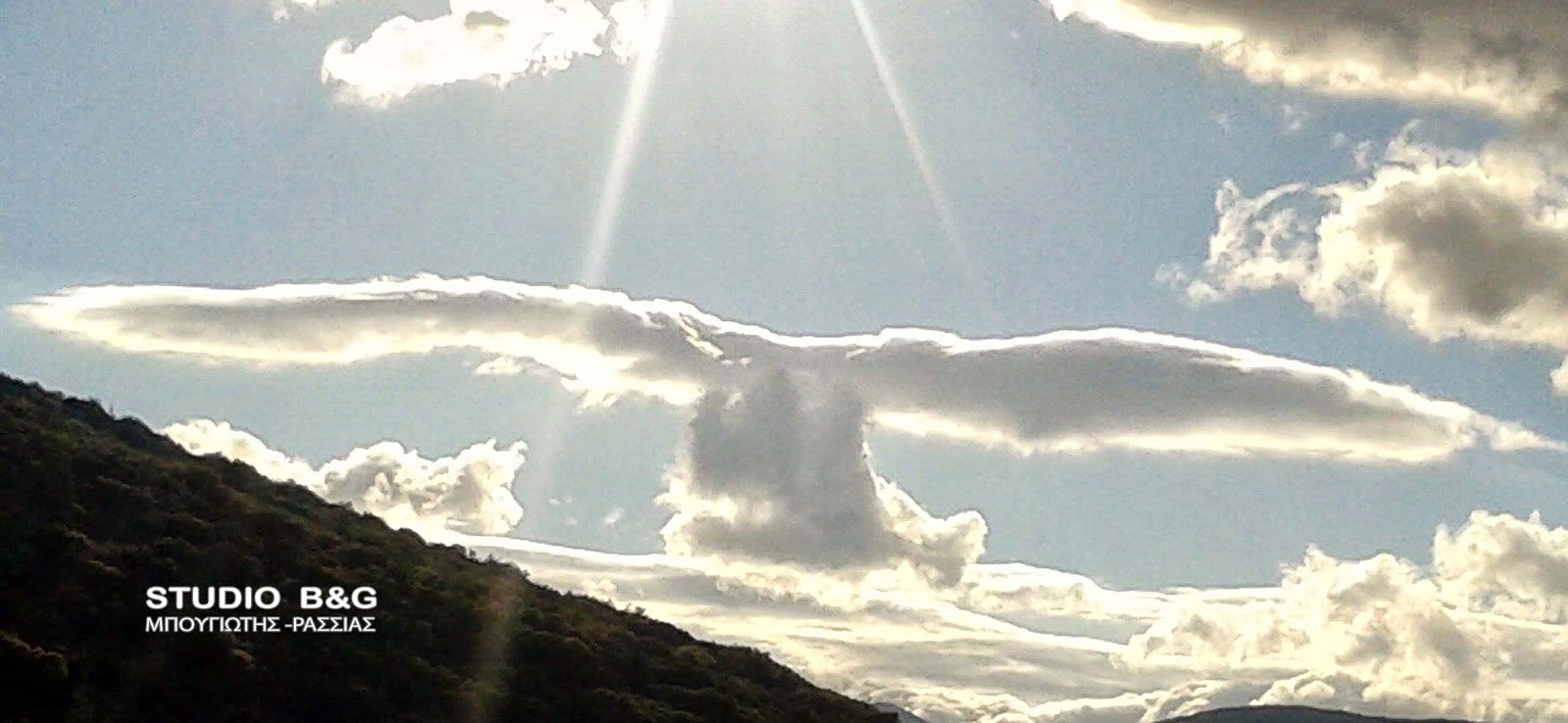 Παράδειγμα παρειδωλίας μπορεί να αποτελεί και ο σχηματισμός από σύννεφα, ενός πουλιού, πιθανόν περιστέρι, που αποτύπωσε ο φωτογραφικός φακός σήμερα πάνω από περιοχή του Ναυπλίου.