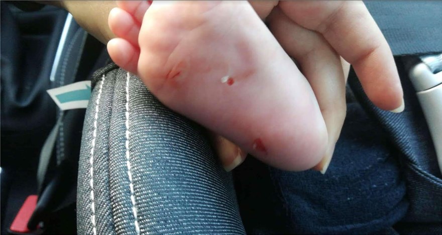 Οι πληροφορίες πάντως αναφέρουν πως πρόκειται για γυναίκα πάνω από πενήντα ετών, μετρίου αναστήματος, με ξανθά μαλλιά και μαύρα ρούχα, η οποία κρατούσε στα χέρια της ένα καρότσι για ψώνια. Χωρίς να το αντιληφθεί κανείς χαράκωσε τα γυμνά πατουσάκια του μωρού με κάποιο αιχμηρό αντικείμενο.