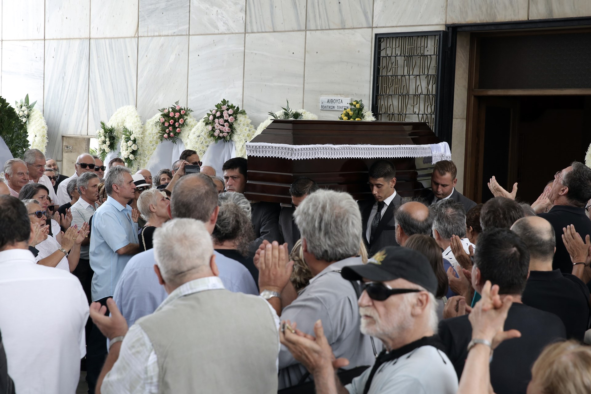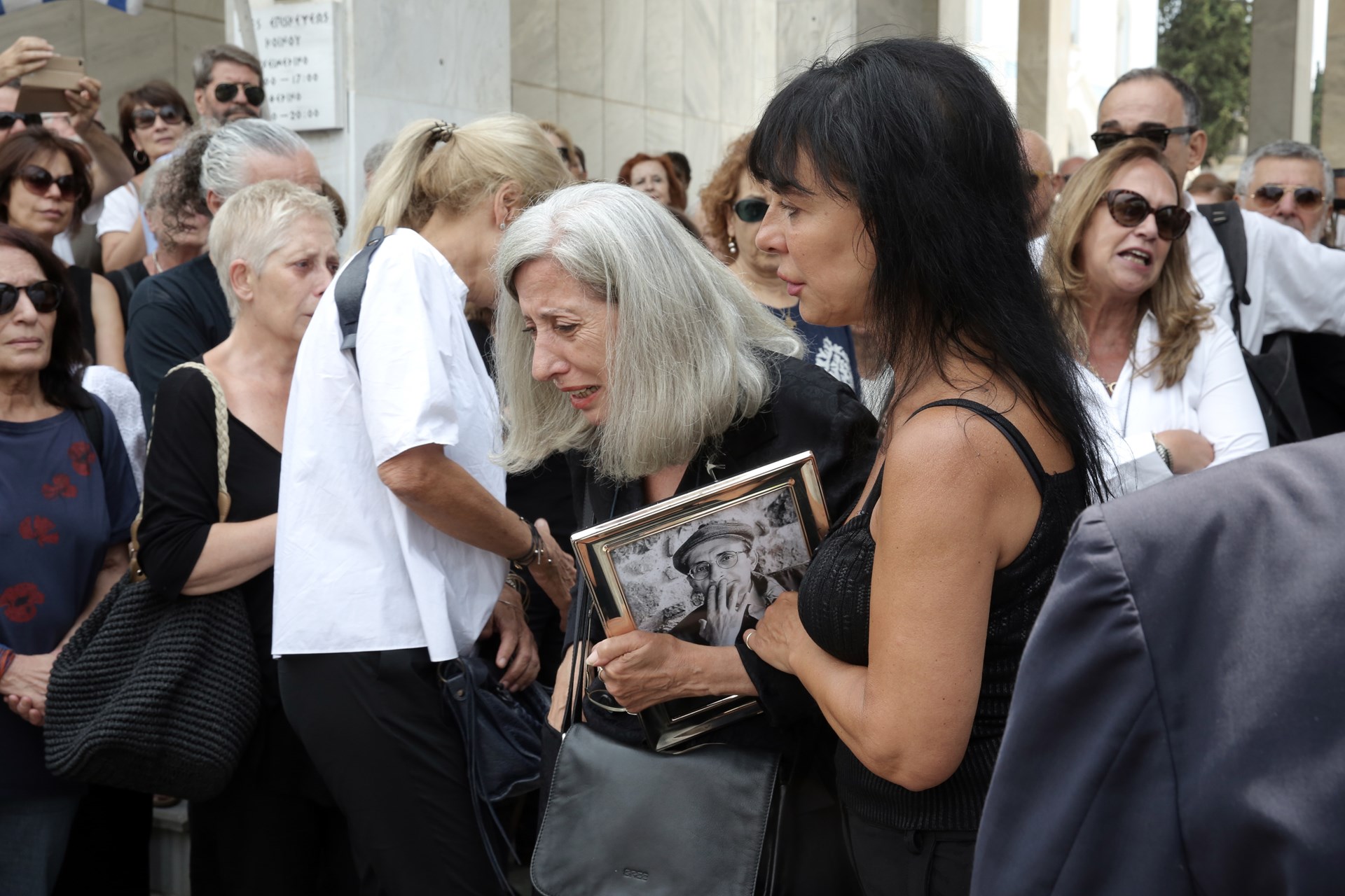 Πλήθος κόσμου παραβρέθηκε σήμερα στην πολιτική κηδεία του Μάνου Ελευθερίου, που πραγματοποιήθηκε στο Α΄ Νεκροταφείο.