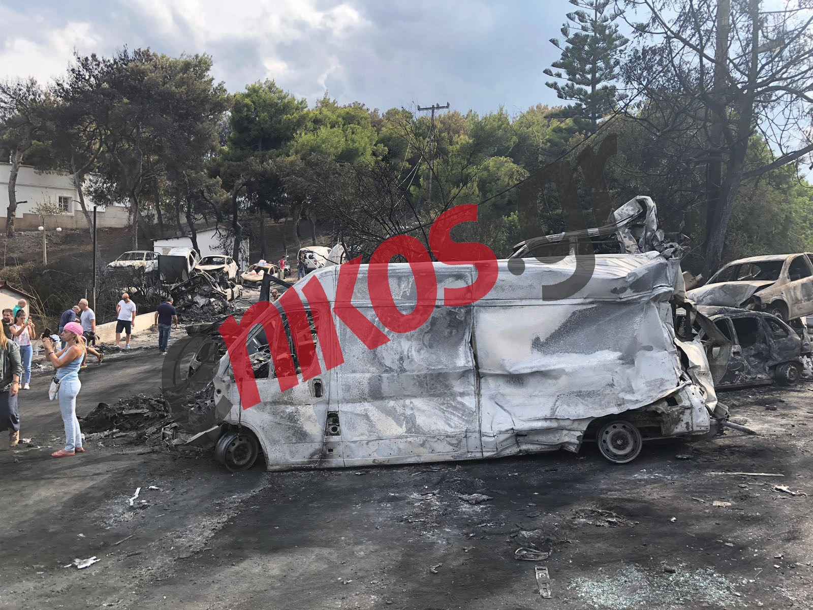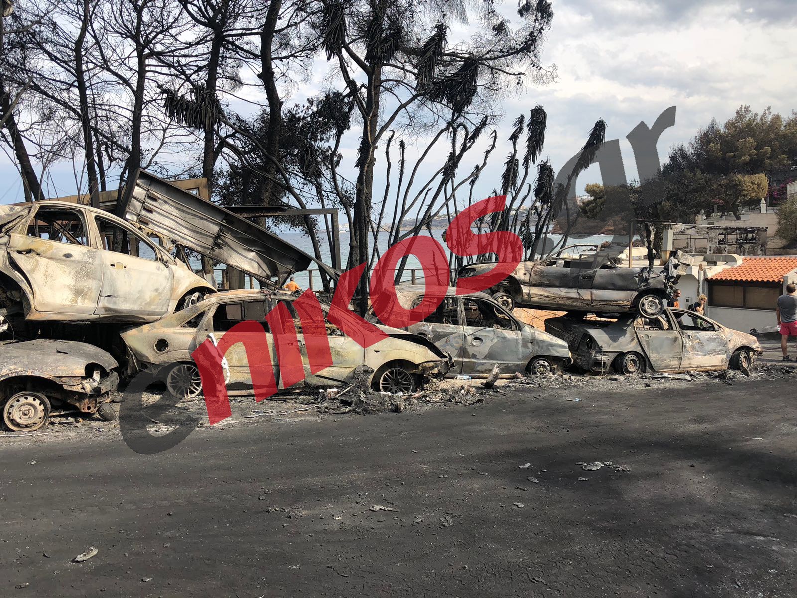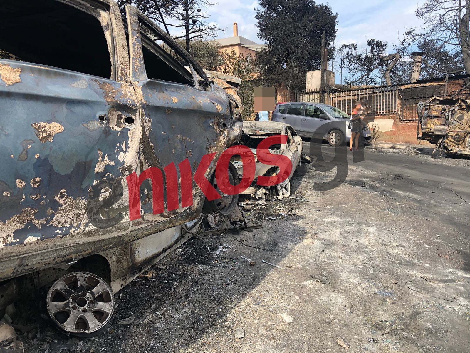 Ο κεντρικός δρόμος στο Μάτι μοιάζει με σκηνικό Αποκάλυψης καθώς όλα έχουν μετατραπεί σε στάχτες. Συγκλονιστικές είναι και οι μαρτυρίες των κατοίκων που είδαν ζωές και περιουσίες να χάνονται στις φλόγες.