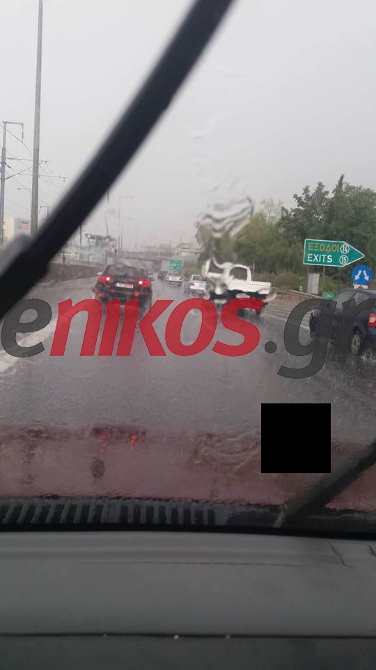 Καταρρακτωδώς πέφτει η βροχή στην Αττική οδό προς Ελευσίνα, ενώ τα αυτοκίνητα κινούνται σημειωτόν στο ύψος προς Λεωφόρο Μαραθώνος, σύμφωνα με τις φωτογραφίες που έστειλε αναγνώστης στο enikos.gr.