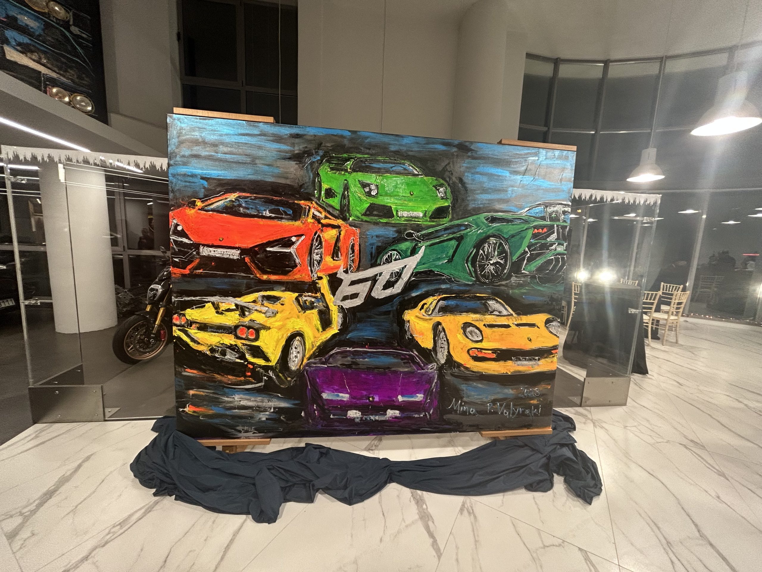 Με την συμπλήρωση της επετείου των 60 χρόνων από την ίδρυση της Ιταλικής αυτοκινητοβιομηχανίας Lamborghini, η εταιρία ανέθεσε την δημιουργία του έργου “60 years Lamborghini Anniversary”, στη ζωγράφο Μίνα Παπαθεοδώρου-Βαλυράκη.