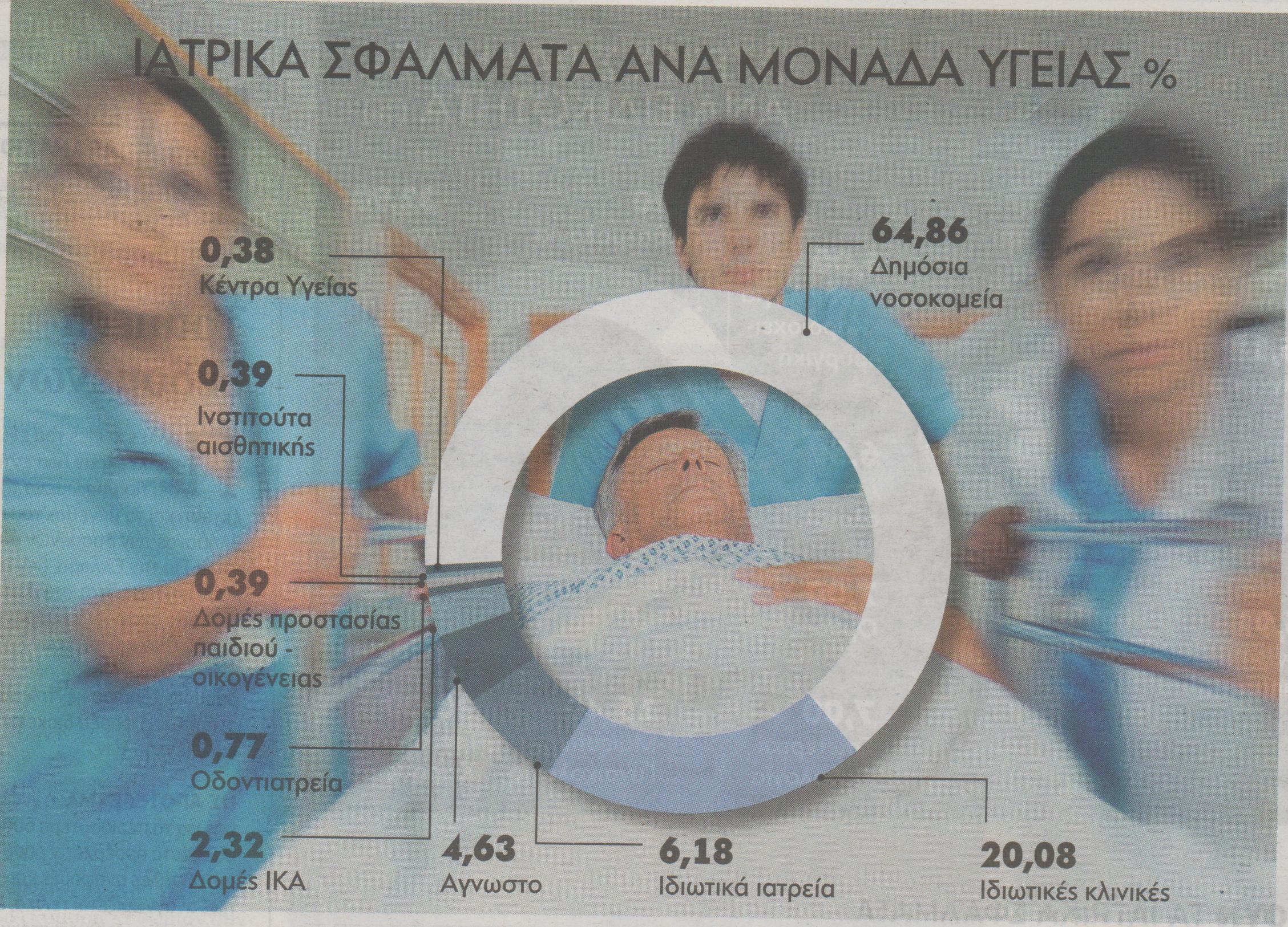 Χαρακτηριστικό είναι ότι οι ιατροδικαστές εκτιμούν πως κάθε χρόνο γίνονται στην Ελλάδα 6.000 ιατρικά σφάλματα.