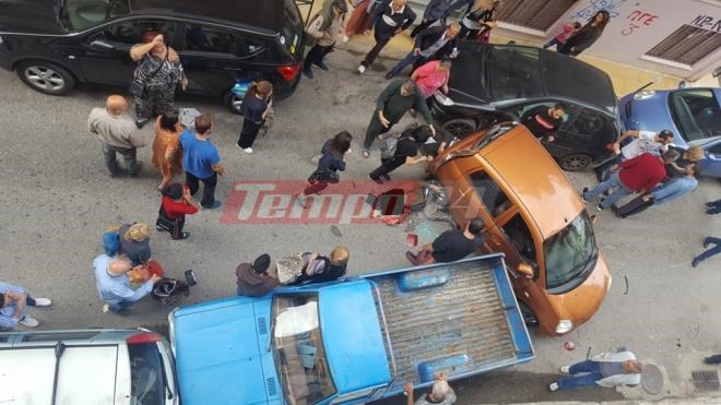 Τροχαίο ατύχημα σημειώθηκε το πρωί της Πέμπτης στη συμβολή των οδών Κιλκίς και Σαρανταπόρου στην Πάτρα όταν οδηγός του Ι.Χ, στην προσπάθεια του να κάνει όπισθεν, πάτησε το γκάζι με αποτέλεσμα να χάσει τον έλεγχο του οχήματος του, να παρασύρει και να εγκλωβίσει δύο πεζούς στις ρόδες του οχήματος.