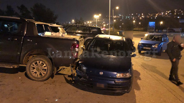 Την ίδια στιγμή ο οδηγός ενός μπλε suzuki που κινούταν προς Λαμία, επιχείρησε να μπει αριστερά για να σταματήσει και αυτός στο πάρκινγκ, με αποτέλεσμα τα δυο αυτοκίνητα να συγκρουστούν.