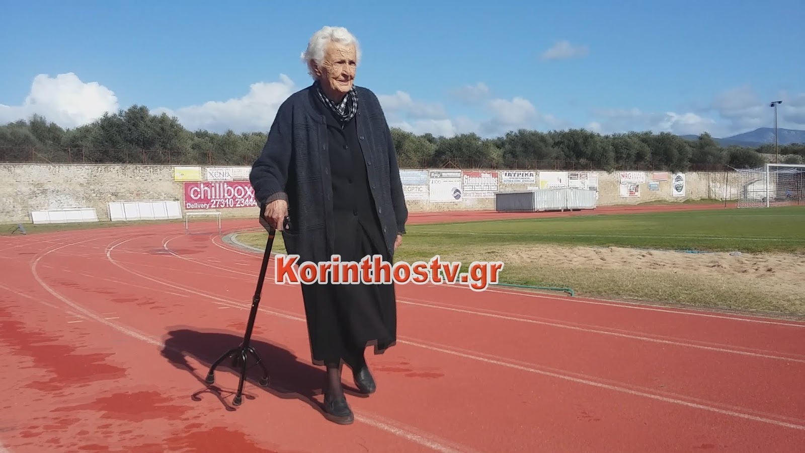 Η κυρία Νίκη Μανούσου 91 ετών, γυμνάζεται καθημερινά στο στάδιο της Σπάρτης και μας παρακινεί όλους για να κάνουμε το ίδιο.