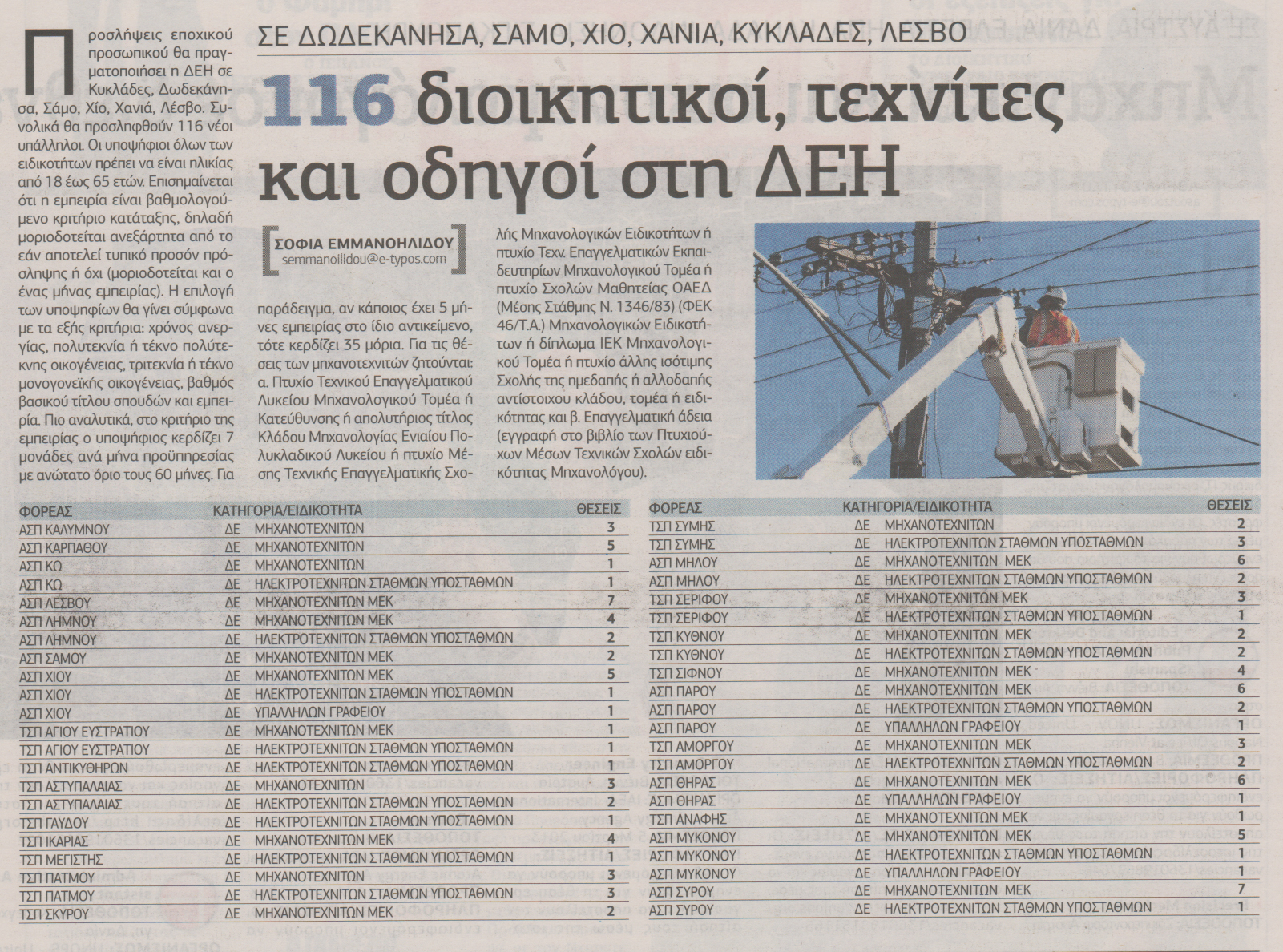 116 διοικητικοί, τεχνίτες και οδηγοί στη ΔΕΗ