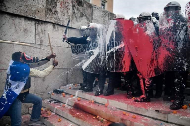 Δείτε τη συλλογή με τα αντικείμενα που κρατούσαν οι κουκουλοφόροι και με τα οποία επιτέθηκαν στους αστυνομικούς, καθώς και τις εικόνες από την επίθεση που δέχθηκαν τα ΜΑΤ έξω από τη Βουλή: