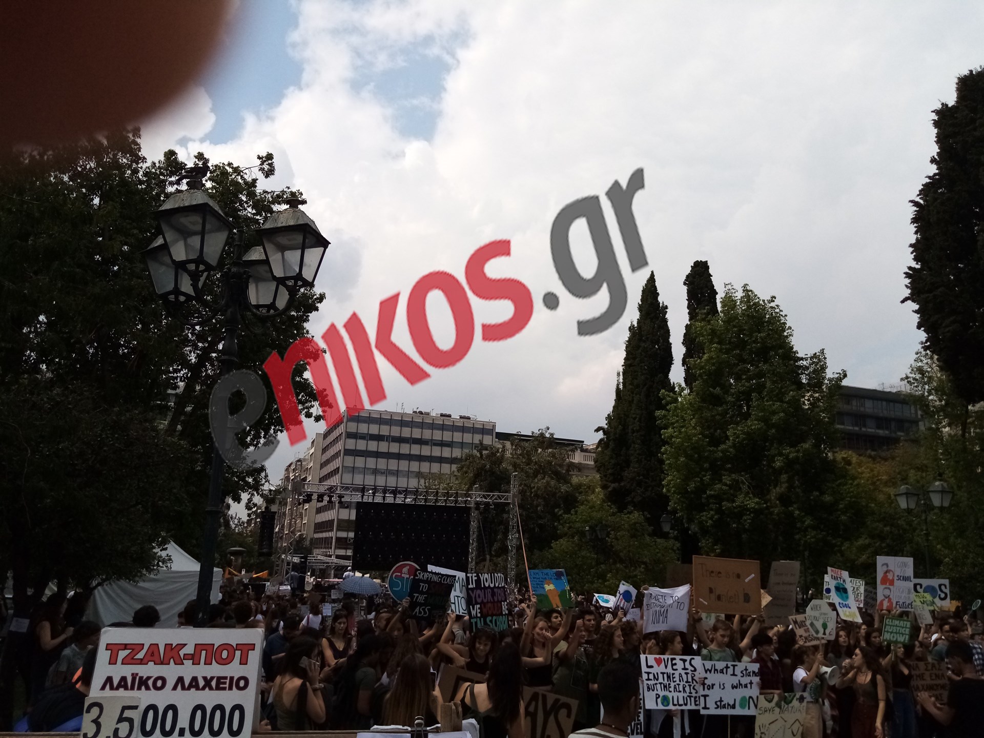 Με συνθήματα «Θέλουμε αλλαγή», «Το κλίμα αλλάζει, γιατί δεν αλλάζουμε εμείς;», «Ας δράσουμε τώρα» και «Για να σας δώσουμε ένα μάθημα, χάνουμε τα δικά μας», χιλιάδες μαθητές κατέκλυσαν την πλατεία Συντάγματος ζητώντας από την πολιτεία να λάβει άμεσα μέτρα για την προστασία του περιβάλλοντος.