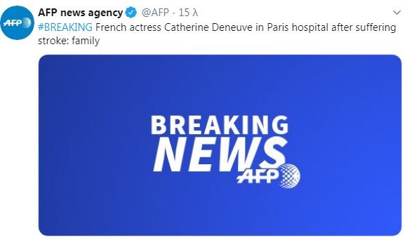 Το πρωί της Τετάρτης έγινε γνωστό ότι η Κατρίν Ντενέβ εισήχθη σε νοσοκομείο στη διάρκεια της νύχτας έπειτα από αδιαθεσία που αισθάνθηκε.