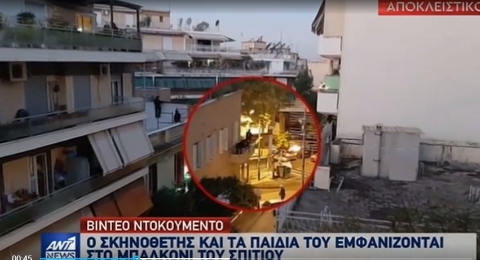 Στις εικόνες, σύμφωνα με το περιβάλλον του σκηνοθέτη, φαίνονται ο ίδιος και οι δύο γιοι του, στο μπαλκόνι του σπιτιού τους, δίπλα από την κατάληψη της οδού Ματρόζου, τη στιγμή που οι αστυνομικοί έχουν εισβάλει στο υπό κατάληψη κτίριο.