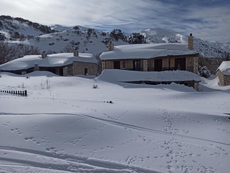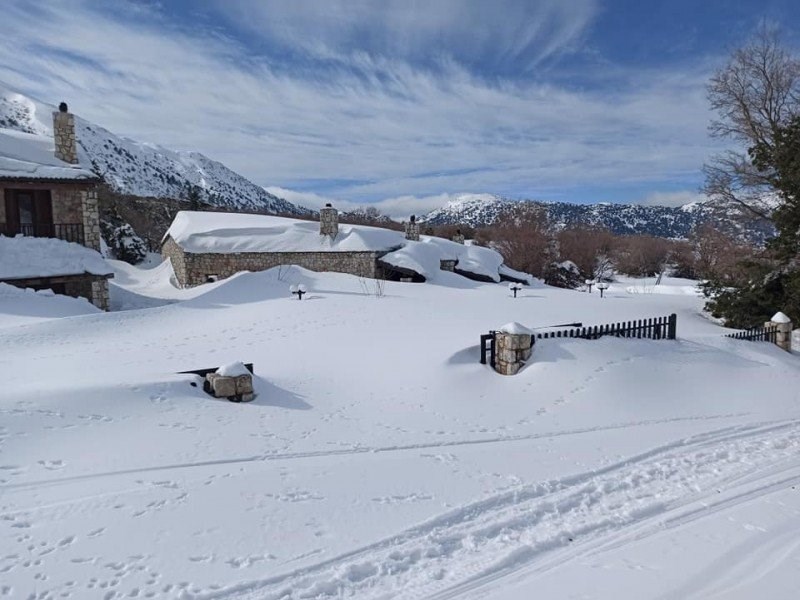 Από το κέντρο πληροφόρησης για τα Λευκά Όρη και τον Εθνικό Δρυμό, μέχρι τις άλλες κτιριακές εγκαταστάσεις που υπάρχουν εκεί, ο χώρος στάθμευσης οχημάτων, αλλά και το φυλάκιο έχουν «χαθεί» κάτω από τα χιόνια.