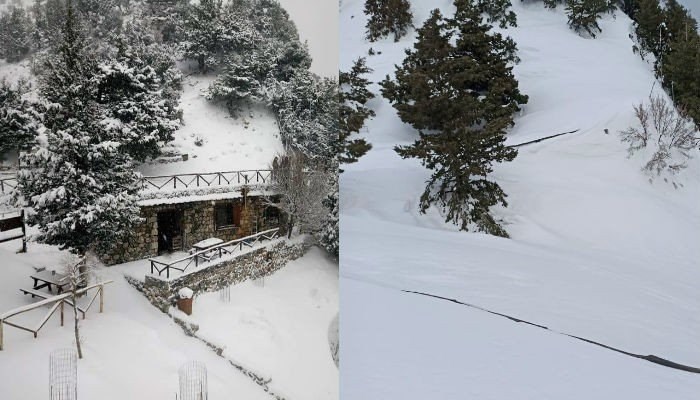 Δείτε αριστερά το φυλάκιο με “φυσιολογικό” χιόνι και δεξιά πως είναι σήμερα: