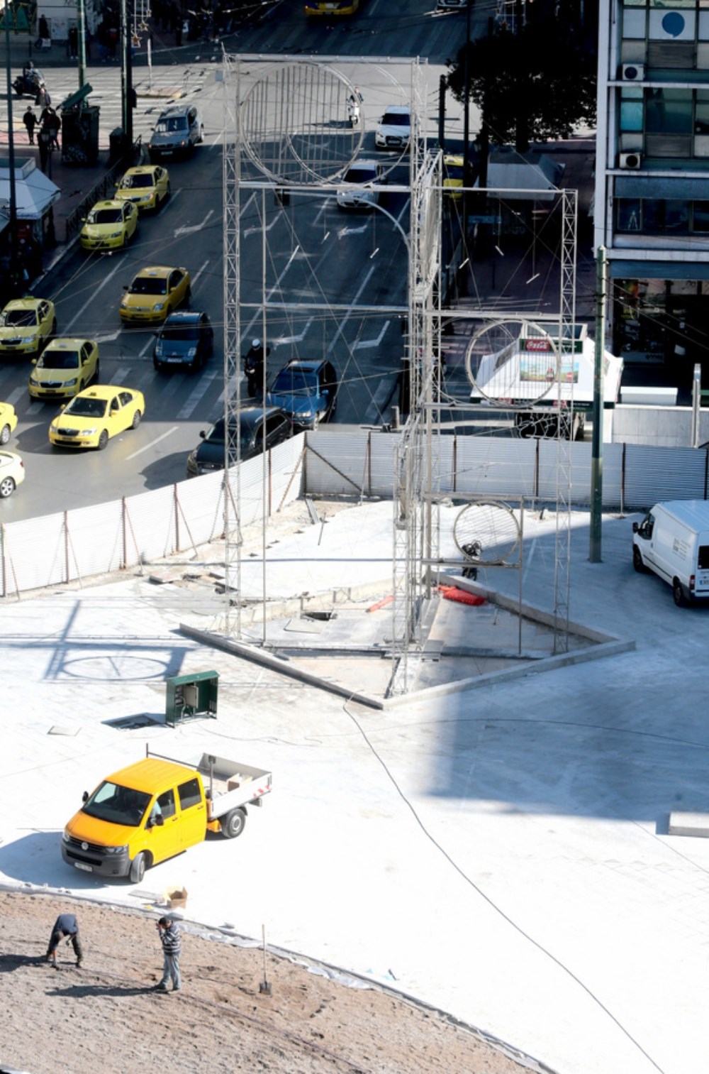 Σε λίγες ημέρες αναμένεται να ολοκληρωθεί η ανάπλαση της πλατείας Ομονοίας, όπου κυρίαρχο θα είναι το συντριβάνι που θα την κοσμεί.