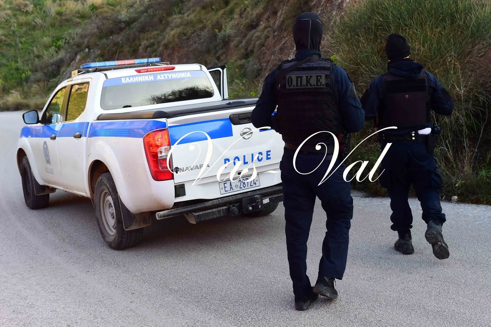 Σύμφωνα με το ρεπορτάζ του Σπύρου Λεβειδιώτη για το δελτίο ειδήσεων του ΑΝΤ1, «το όχημα των δραστών ήταν παρκαρισμένο στο συγκεκριμένο σημείο και οι αστυνομικοί της Ασφάλειας προσπάθησαν να τους ακινητοποιήσουν. Εκείνη τη στιγμή, βγήκε τουλάχιστον ένα όπλο και πυροβόλησαν προς τους αστυνομικούς. Οι αστυνομικοί ανταπέδωσαν τα πυρά και οι τρεις άνδρες στην προσπάθειά τους να διαφύγουν, έπεσαν από τον γκρεμό. Όμως, οι αστυνομικοί τους καταδίωξαν και κατάφεραν να τους συλλάβουν».
