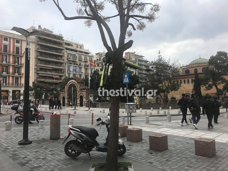 Μέχρι και σε δέντρο κρέμασαν ηλεκτρικό πατίνι άγνωστοι στη Θεσσαλονίκη.Μετά τα περιστατικά με νεαρούς να πετάνε τα πατίνια στον Θερμαϊκό έρχεται να προστεθεί και αυτό το συμβάν που σημειώθηκε στην πλατεία της Αγίας Σοφίας, στο κέντρο της Θεσσαλονίκης.Σημειώνεται ότι συνεργεία του δήμου είχαν προχωρήσει στην ανάσυρση ηλεκτρικών πατινιών από την θάλασσα.Δείτε φωτογραφίες του Thestival: