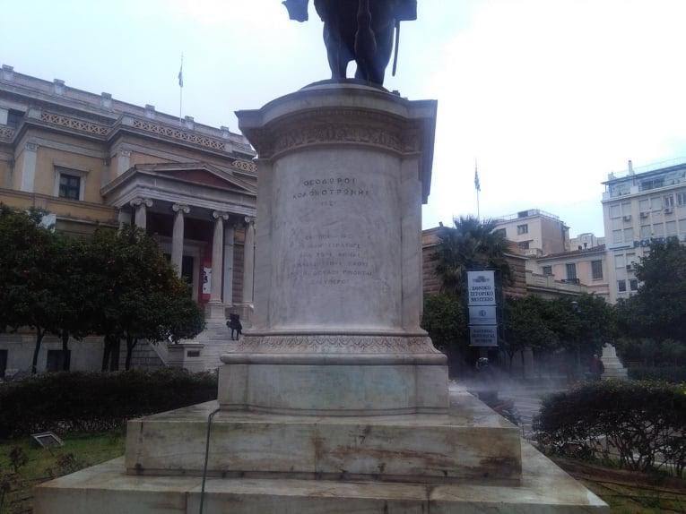 Άγνωστοι, οι οποίοι συμμετείχαν σε πορεία που έγινε το Σάββατο στο κέντρο της Αθήνας, βανδάλισαν το άγαλμα του Κολοκοτρώνη στην οδό Σταδίου. Συγκεκριμένα οι δράστες έγραψαν με μαύρο σπρέι «Σε 100 χρόνια θα σε αντικαταστήσει η Γιάννα Αγγελοπούλου» και λίγο πιο κάτω «Να πεθάνει η Ελλάδα».