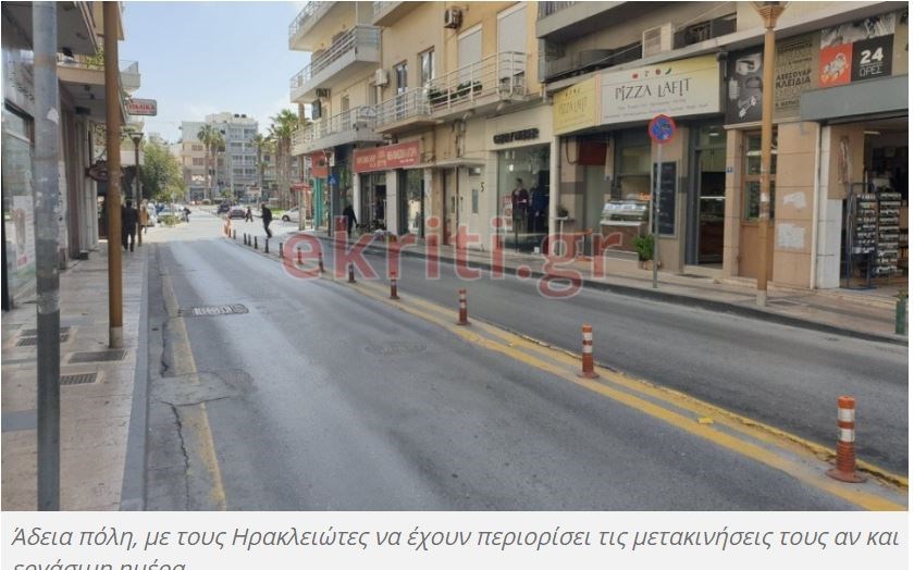 Ηράκλειο Κρήτης σε ημέρες …αργίας και μαζικής εξόδου των εκδρομέων θυμίζει η πόλη, καθώς οι μετακινήσεις τον πολιτών έχουν μειωθεί δραστικά, υπό τον φόβο του κορονοϊού και της αύξησης των κρουσμάτων και σε τοπικό επίπεδο. Η καμπάνια του υπουργείου Υγείας “Μένουμε Σπίτι”, αποδίδει και αυτό είναι ενθαρρυντικό, καθώς άπαντες πρέπει να συμμορφωθούν με τις υποδείξεις των ειδικών, ξεκινώντας από την ατομική ευθύνη. Οι εικόνες του ekriti.gr αποτυπώνουν την εικόνα της πόλης στις 10 το πρωί.