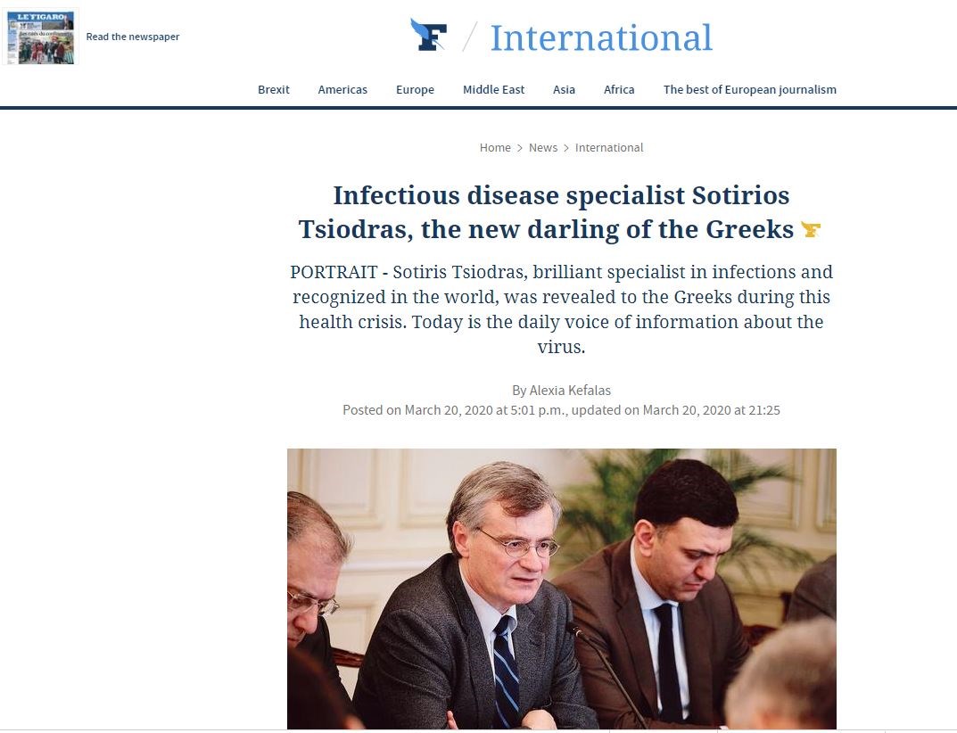 Το πρόσωπο των ημερών στην Ελλάδα, τον επικεφαλής λοιμωξιολόγο του Υπουργείου Υγείας, Σωτήρη Τσιόδρα, παρουσιάζει η γαλλική εφημερίδα Le Figaro, σε ένα εκτενές άρθρο: