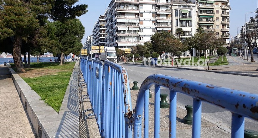 Με 400 σιδερένια κιγκλιδώματα και σχοινί κλείνει από σήμερα η Νέα Παραλία της Θεσσαλονίκης, στο κομμάτι από το άγαλμα του Βότση έως το Μέγαρο Μουσικής, προκειμένου να μην επαναληφθούν εικόνες συνωστισμού στο πλαίσιο των μέτρων για τον περιορισμό εξάπλωσης του κορονοϊού και περιορισμού και απαγόρευσης της κυκλοφορίας.