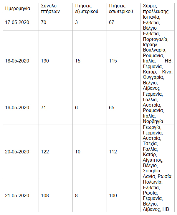 Πτήσεις εξωτερικού και εσωτερικού από 17-5-2020 έως 21-5-2020