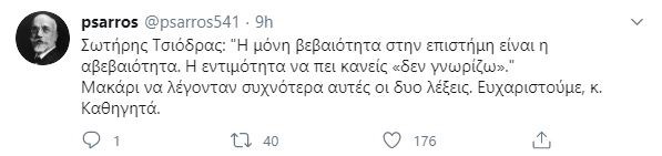 Μετά την ομιλία του λοιμωξιολόγου το Twitter πήρε “φωτιά”, με τους χρήστες του μέσου κοινωνικής δικτύωσης να τον αποθεώνουν και να τον ευχαριστούν εκφράζοντας την εκτίμησή τους.