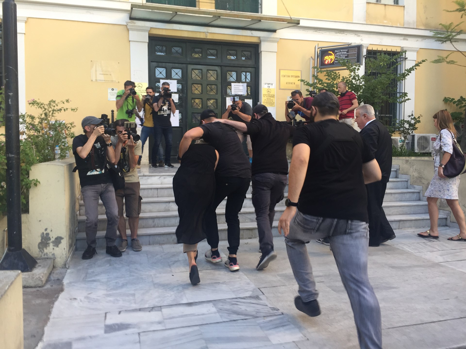 Λίγο πριν τις 7.30 το απόγευμα της Πέμπτης (11/06), η 35χρονη οδηγήθηκε στην Ευελπίδων με τα μέτρα που είχε λάβει η αστυνομία να είναι δρακόντεια, όπως φαίνεται και στις φωτογραφίες που εξασφάλισε το enikos.gr.