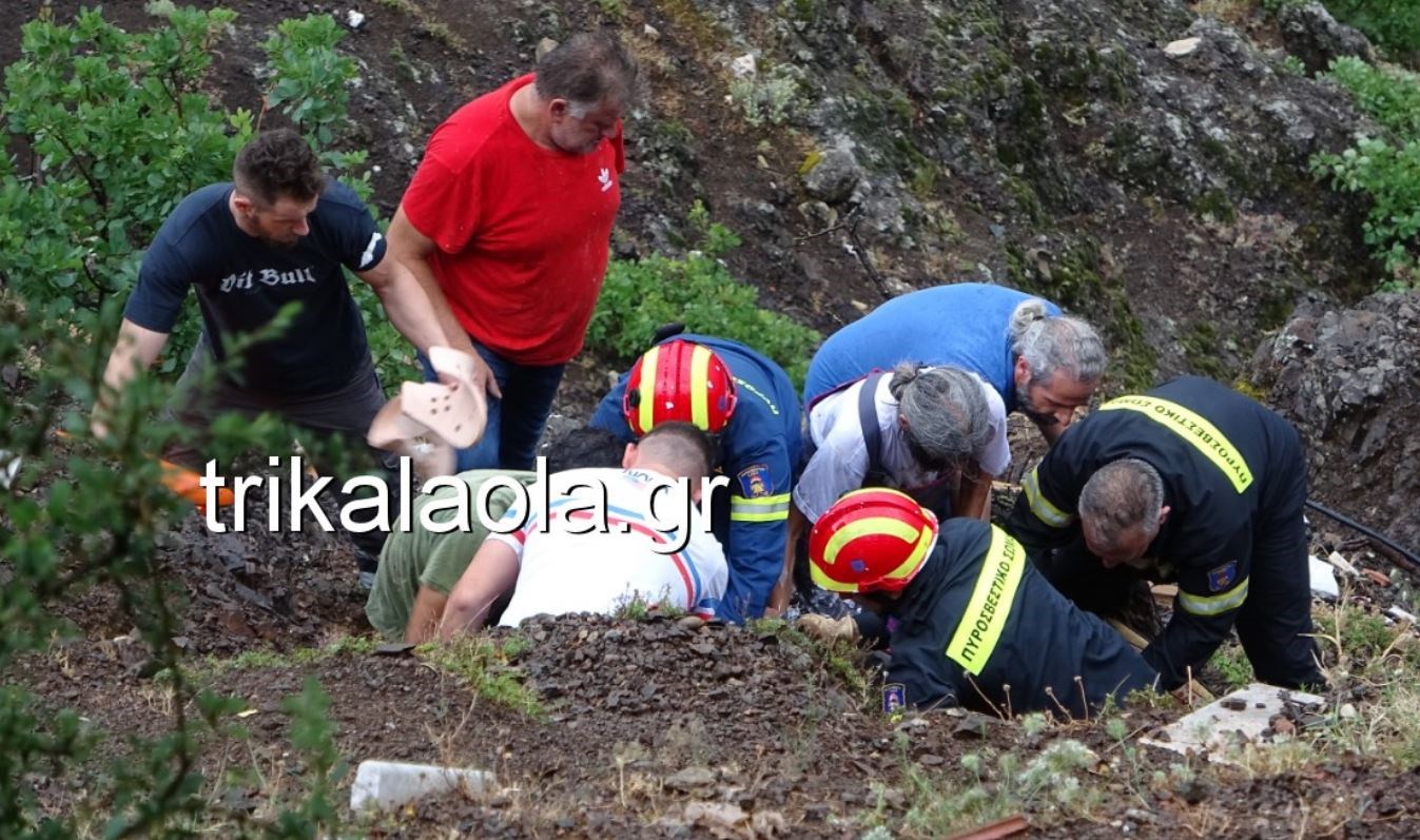 Τον άτυχο άντρα τον παρέλαβε ασθενοφόρο του ΕΚΑΒ, όπου τον μετέφερε στο Νοσοκομείο Τρικάλων. Παρά τα βαριά τραύματα, δεν υπάρχει κίνδυνος για τη ζωή του. Στο σημείο του ατυχήματος ήταν από την πρώτη στιγμή και άτομα της οικογένειά του.