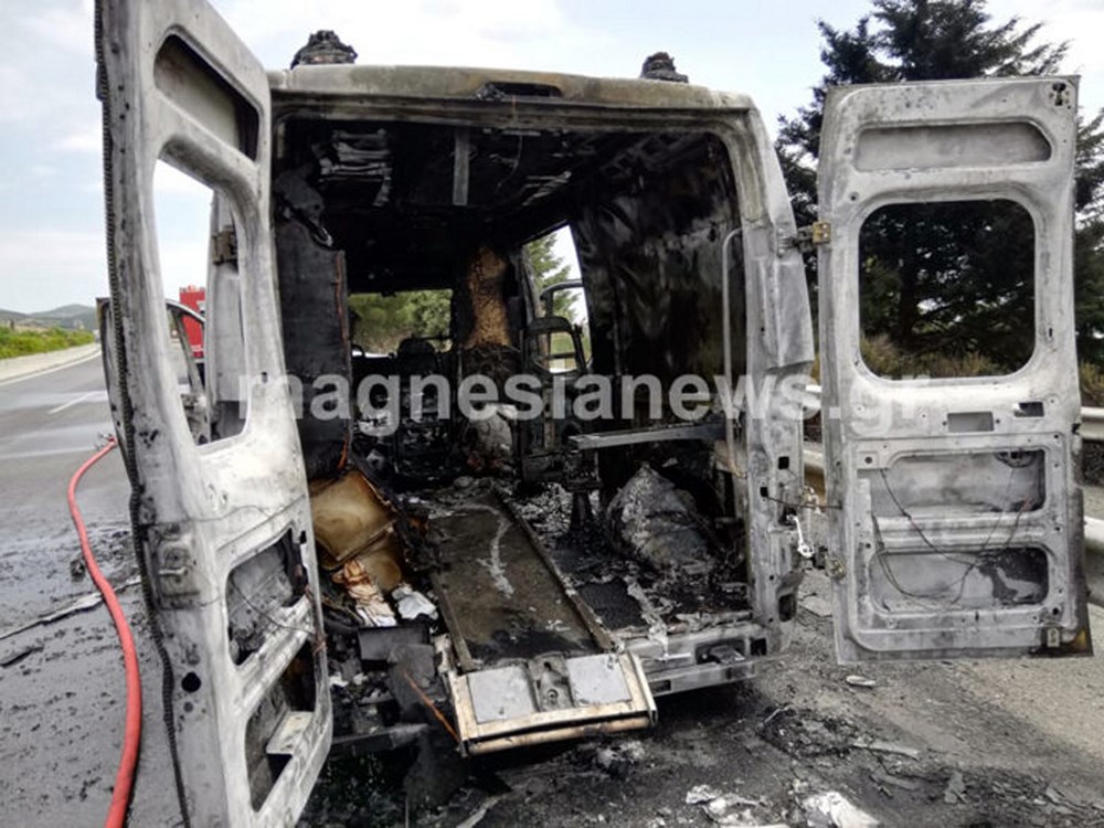 Πανικός προκλήθηκε, όταν ασθενοφόρο του ΕΚΑΒ που μετέφερε ασθενή, πήρε φωτιά εν κινήσει. Συγκεκριμένα, το όχημα τυλίχθηκε στις φλόγες, λίγο πριν από τη μία το μεσημέρι, ενώ κινούνταν στην εθνική οδό, μετά τον κόμβο του Βελεστίνου, στο ρεύμα προς Αθήνα.