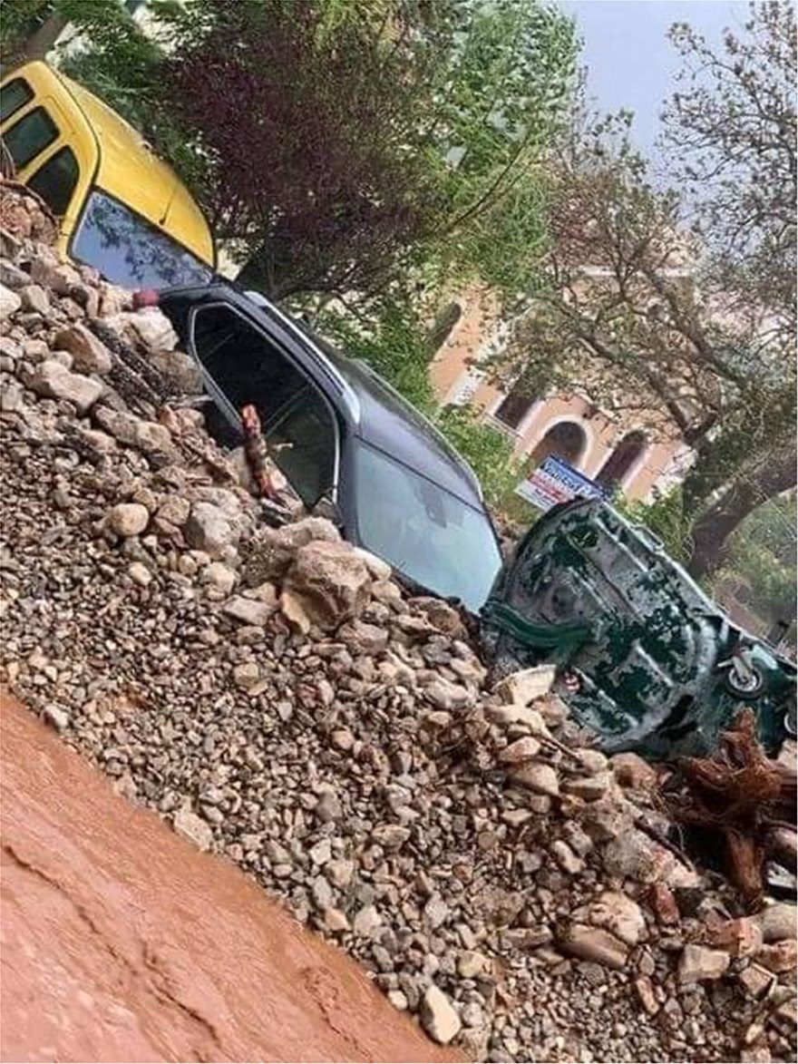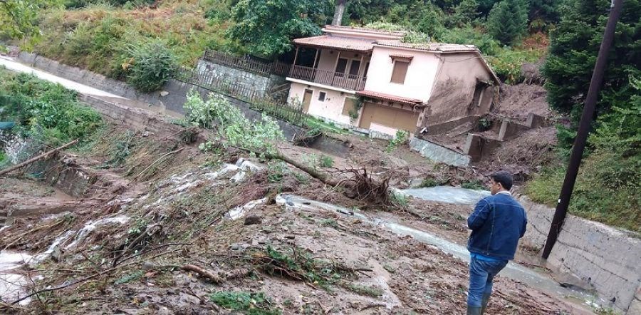 Εικόνες βιβλικής καταστροφής και στην Καρδίτσα, όπου δρόμοι άνοιξαν στη μέση και σπίτια κόπηκαν στα δύο.