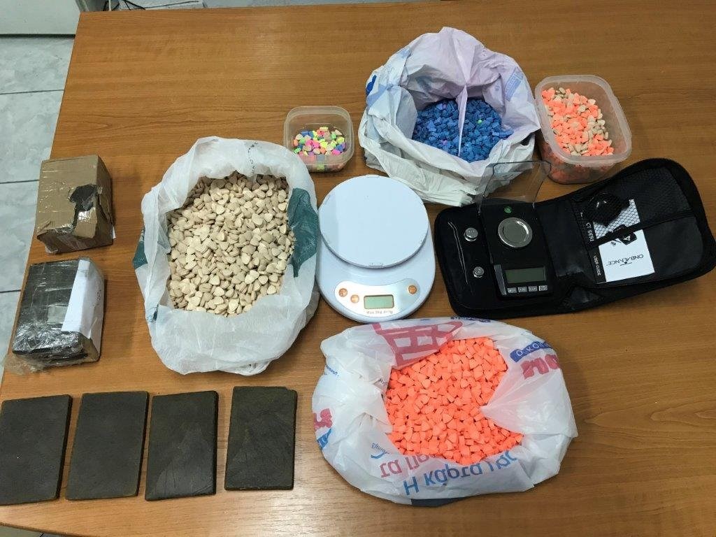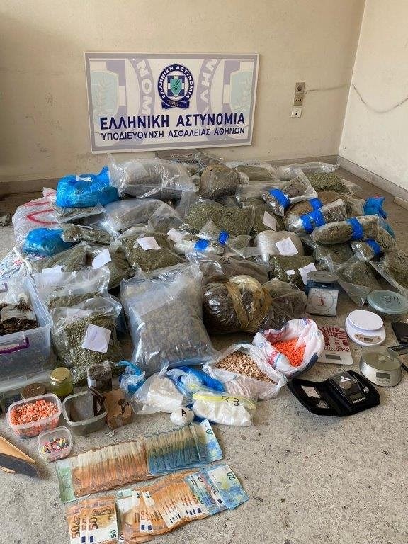 Από τις ενεργηθείσες έρευνες σε οικίες και χώρους αποθήκευσης ναρκωτικών (καβάτζες), καθώς και στην κατοχή των συλληφθέντων, βρέθηκαν συνολικά και κατασχέθηκαν: ποσότητα ακατέργαστης κάνναβης βάρους -47.494- γραμμ., ποσότητα κατεργασμένης κάνναβης (σοκολάτα) βάρους -1.406- γραμμ., ποσότητα κοκαΐνης βάρους -574- γραμμαρίων, 2.000 δισκία ECSTASY, 88 φιαλίδια με έλαιο κάνναβης, φιαλίδιο με MDMA, 11 ζυγαριές ακριβείας, το χρηματικό ποσό των 5.180 ευρώ, ένα μαχαίρι, ένας φορητός ηλεκτρονικός υπολογιστής, 14 κινητά, δύο τρίφτες κάνναβης, διάφορα κλειδιά, έγγραφα και σημειώσεις, ένα Ι.X.E. αυτοκίνητο και 3 μοτοσικλέτες.