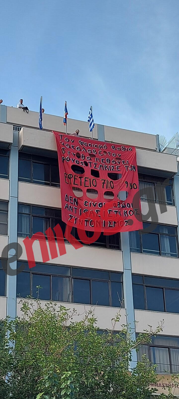Ένα μεγάλο κόκκινο πανό με το σύνθημα “Δεν είναι αθώοι” κρέμεται από το κτίριο ακριβώς απέναντι από το Εφετείο, όπου στις 11:00 αναμένεται η απόφαση της Δικαιοσύνης για τη Χρυσή Αυγή. Την ίδια ώρα πλήθος κόσμου έχει συγκεντρωθεί έξω από το Εφετείο, πραγματοποιώντας πορεία, με την λεωφόρο Αλεξάνδρας να είναι κλειστή και στα δύο ρεύματα.