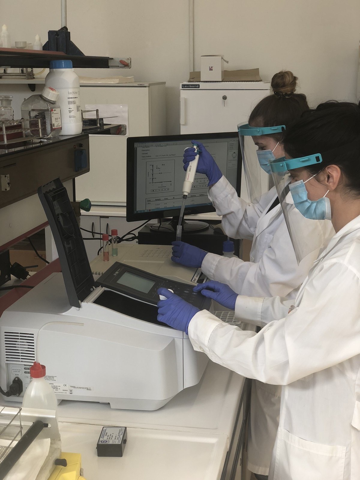 Φωτογραφία: Ερευνήτριες στο Εργαστήριο Τεχνικής και Σχεδιασμού Περιβάλλοντος του τμήματος Πολιτικών Μηχανικών ΑΠΘ επεξεργάζονται δείγμα λύματος από την Εγκατάσταση Επεξεργασίας Λυμάτων Θεσσαλονίκης.